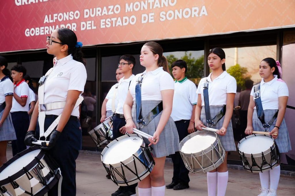 El funcionario estatal refrendó el compromiso de brindarles acompañamiento para que se conviertan en la mejor Banda de Guerra Monumental de México y un ejemplo positivo para las niñas, niños y adolescentes de Sonora.