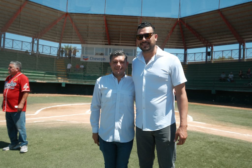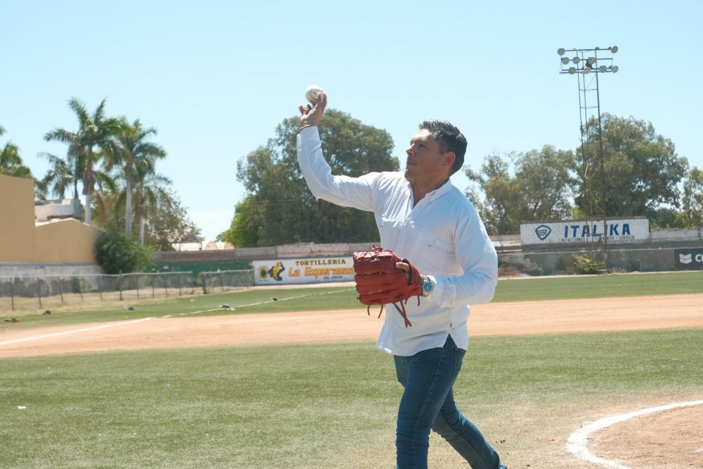 Previo al juego de béisbol entre Gallos de Huatabampo y Águilas de Álamos, las emociones del juego comenzaron con el lanzamiento de la primera bola, la cual estuvo a cargo del Munícipe Huatabsmpense.