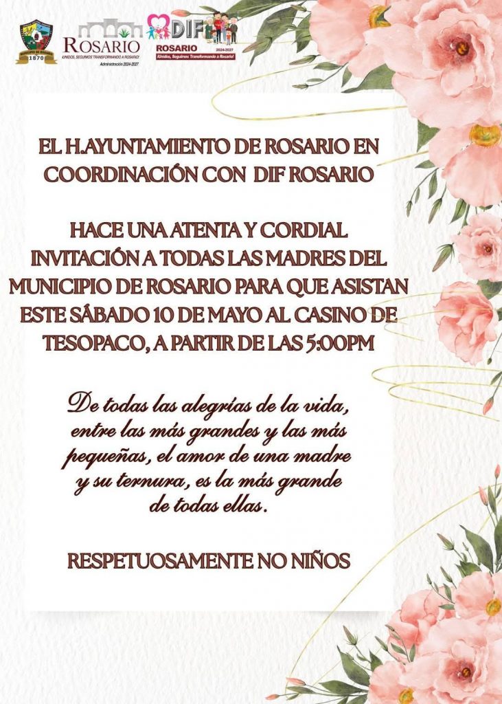 Como medio de comunicación, nos dimos a la tarea de buscar las invitaciones realizadas por algunos municipios del sur de Sonora, donde los PRESIDENTES MUNICIPALES invitan al POPULAR Y TRADICIONAL FESTEJO DE QUIENES NOS DIERON VIDA… Al final son ustedes quienes tienen la opinión final. Sugerimos ver los flayer( fotos/ gráficas) para corroborar lo señalado