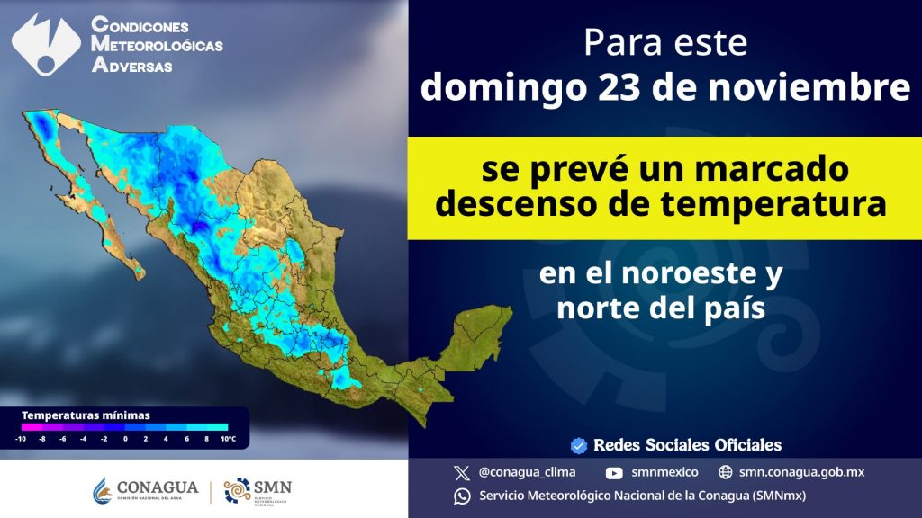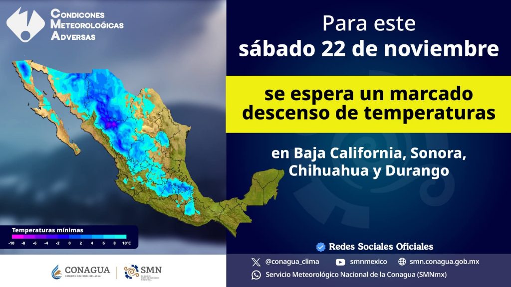 Durante este fin de semana, se espera un descenso en las #Temperaturas ❄️ en entidades del noroeste y norte del territorio nacional. ¡Extrema precauciones!