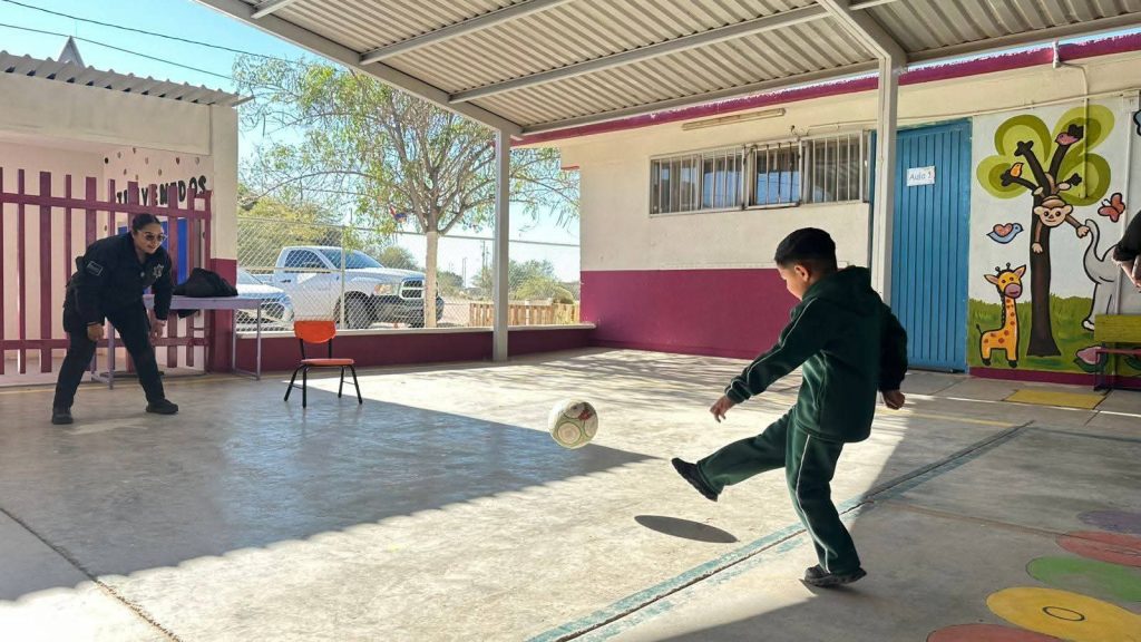 La SSP Sonora, en apoyo a la iniciativa del Gobierno de México que busca extender la experiencia de la Copa del Mundo de la FIFA 2026, personal del Centro de Prevención del Delito lleva a los municipios actividades deportivas para el desarrollo de niñas y niños, en las que se fortalecen valores como el trabajo en equipo, la disciplina y la convivencia.