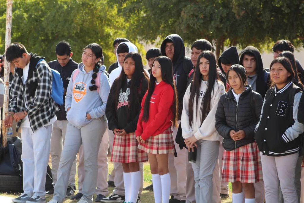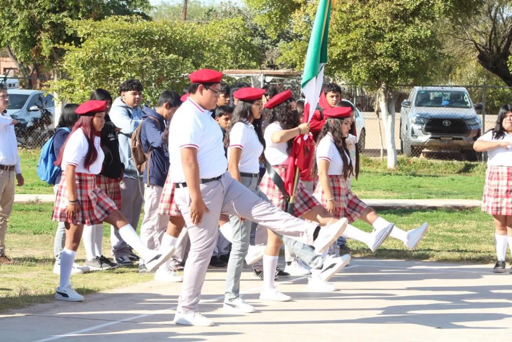 Etchojoa, Son.- El Presidente Municipal, Ing. Luis Arturo Robles Higuera, encabezó el lunes cívico en CECYTES, Buaysiacobe, acompañado de su equipo de trabajo.