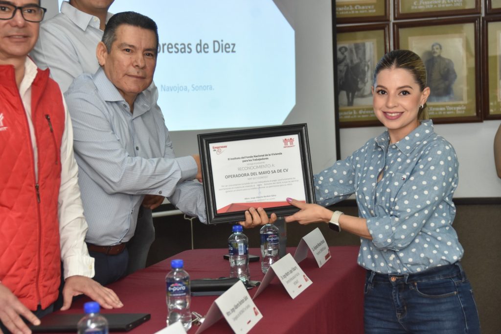 Navojoa, Sonora, 4 de abril 2025.- Por el cumplimiento puntual de sus contribuciones fiscales y otras obligaciones patronales en el rubro de vivienda, el Infonavit entregó hoy a 27 compañías de Navojoa el distintivo “Empresas de Diez”, designación que el delegado estatal, Jorge Alberto Borbón Sáinz, alabó como parte del ejemplo de progreso que el municipio está dando en Sonora.