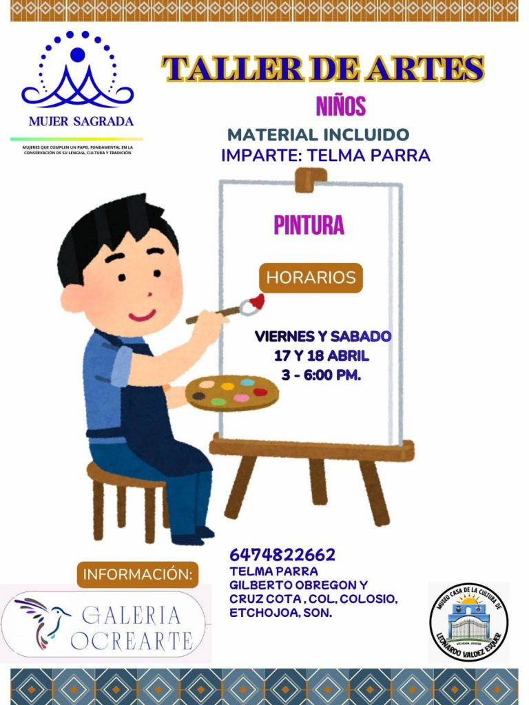 Los talleres se realizarán en Galería Ocrearte, ubicada en las calles Gilberto Obregón y Cruz Cota, colonia Colosio, en Etchojoa, Sonora.