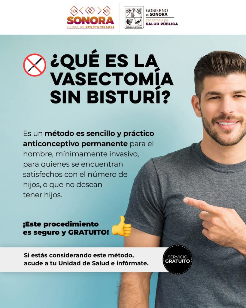 Sonora; 26 de marzo de 2025.- La Secretaría de Salud Sonora ofrece la vasectomía sin bisturí y de forma gratuita, es uno de los métodos anticonceptivos más efectivos para los hombres. 🧑🏽🦱 ☑️