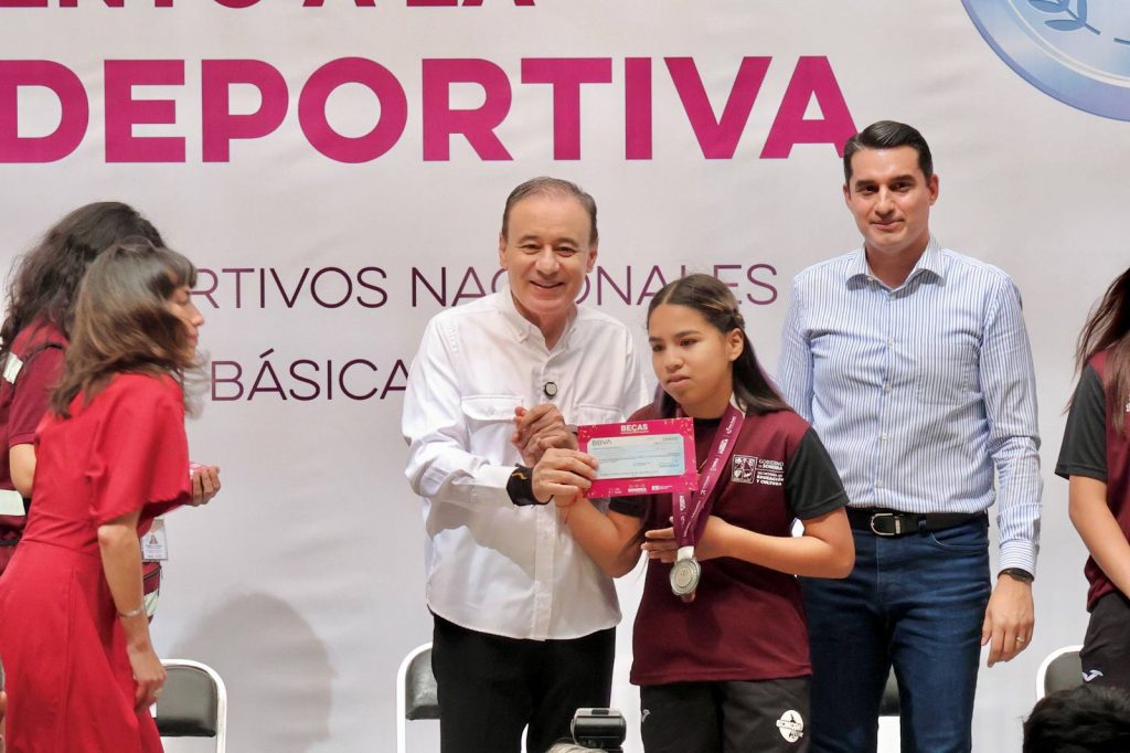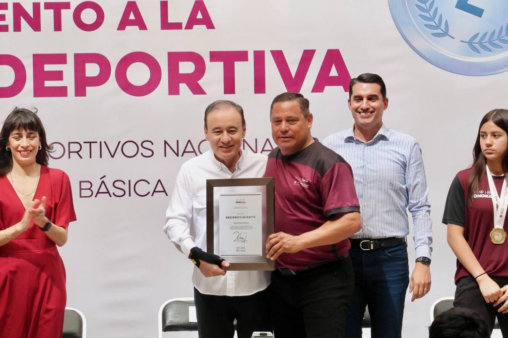 - El Gobernador de Sonora entregó estímulos económicos a 139 atletas y entrenadores, por un monto de 5 millones 718 mil pesos, en reconocimiento a su esfuerzo y desempeño en las competencias Nacionales Escolares de Educación Básica.