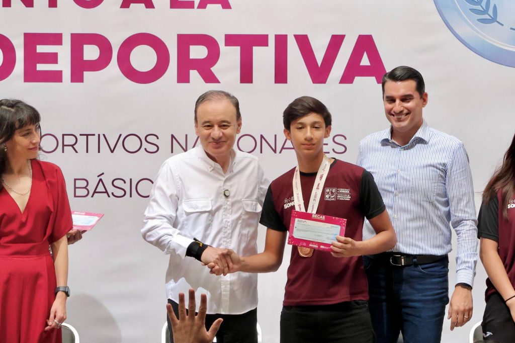 “Es un honor que nuestro estado, gracias a su esfuerzo, haya destacado a nivel nacional como un estado que cumplió las mayores expectativas de sus concursantes, de sus atletas. Yo espero que cada una, cada uno de ustedes que ya probó un pedacito de gloria con la medalla que ganaron, siga adelante, y ese pedacito de gloria que probaron se convierta en gloria nacional e internacional”, indicó el gobernador Durazo.