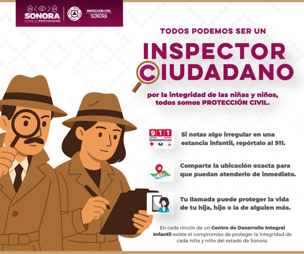Sonora; 24 de septiembre de 2025.- Las Instancias Infantiles deben ser lugares seguros y libres de riesgos para la niñez, si miras alguna anomalía que ponga en peligro a los infantes, no dudes en llamar al 9-1-1 para denunciarlo. #TodosSomosProteccionCivil
