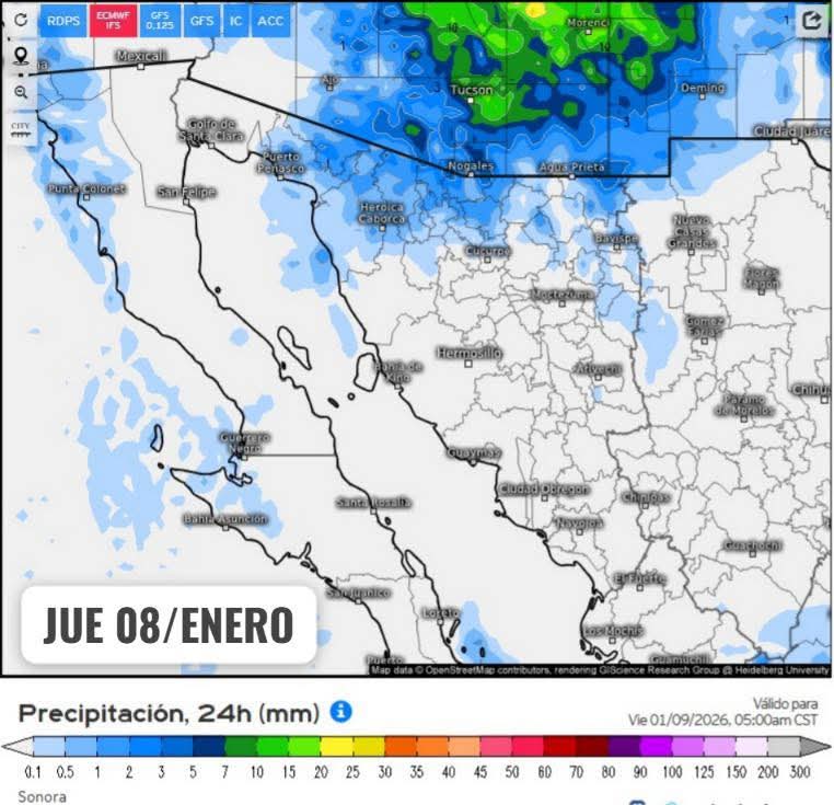 Hermosillo, Sonora a 07 de enero de 2026.- miércoles basándose en la valoración y análisis de la información meteorológica en general y con base en información del Servicio Meteorológico Nacional y diferentes fuentes oficiales de los Estados Unidos, la Coordinación Estatal de Protección Civil emite el siguiente pronóstico: