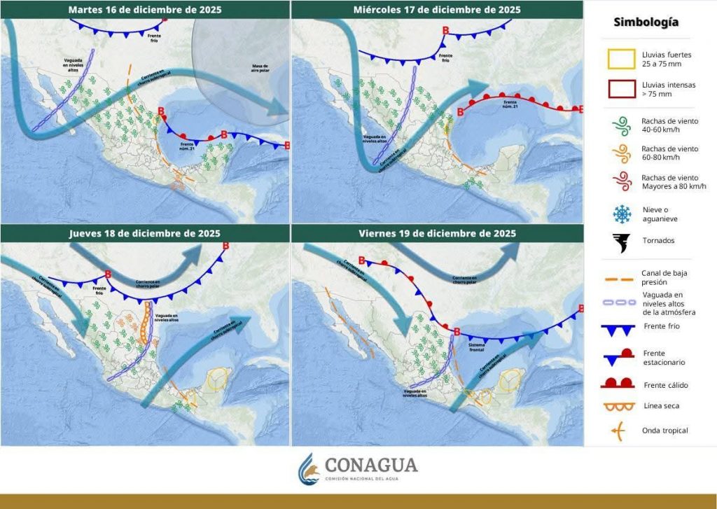 Hermosillo, Sonora a 16 de diciembre de 2025.- Martes, basándose en la valoración y análisis de la información meteorológica en general y con base en información del Servicio Meteorológico Nacional y diferentes fuentes oficiales de los Estados Unidos, la Coordinación Estatal de Protección Civil emite el siguiente pronóstico: