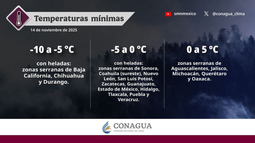 ¡Prepárate! @conagua_clima nos informa el pronóstico de temperaturas mínimas para hoy: