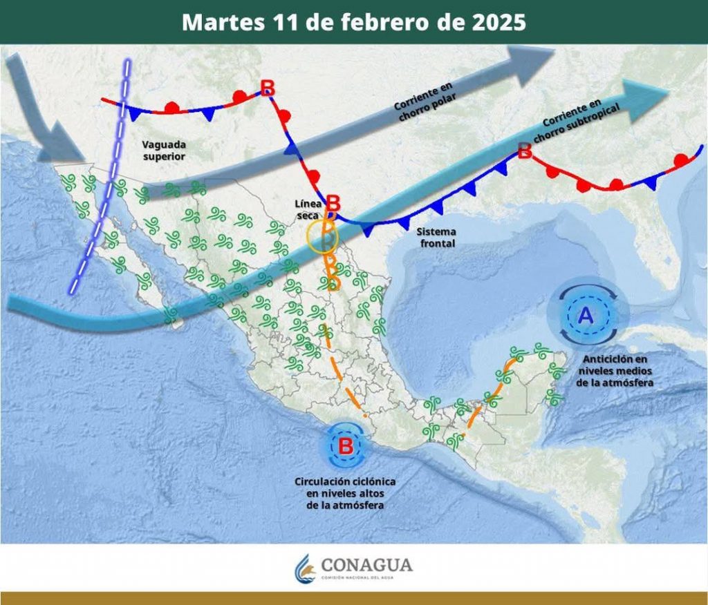 Por otro lado, se pronóstica el ingreso de un nuevo frente frío durante los días 14 y 15 de febrero, ocasionando rachas de viento, un descenso en las temperaturas y probabilidad de lluvias dispersas sobre algunos puntos del estado.
