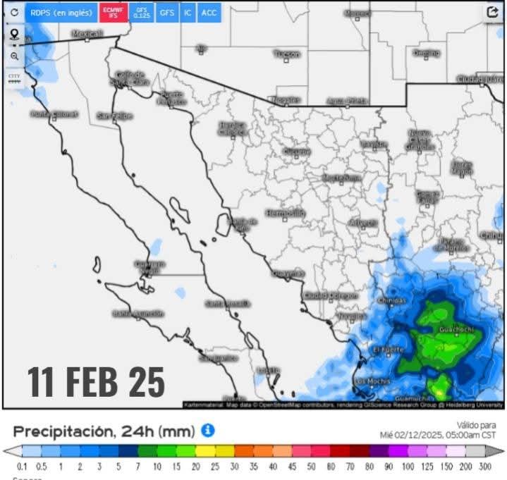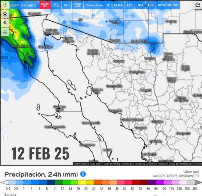 Hermosillo, Sonora a 11 de febrero de 2025.- Martes, basándose en la valoración y análisis de la información meteorológica en general y con base en información del Servicio Meteorológico Nacional y diferentes fuentes oficiales de los Estados Unidos, la Coordinación Estatal de Protección Civil emite el siguiente pronóstico:
