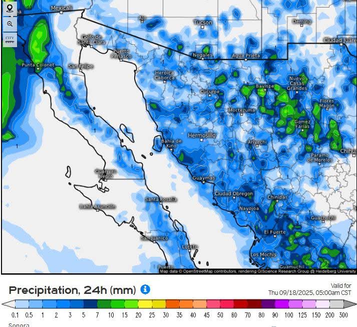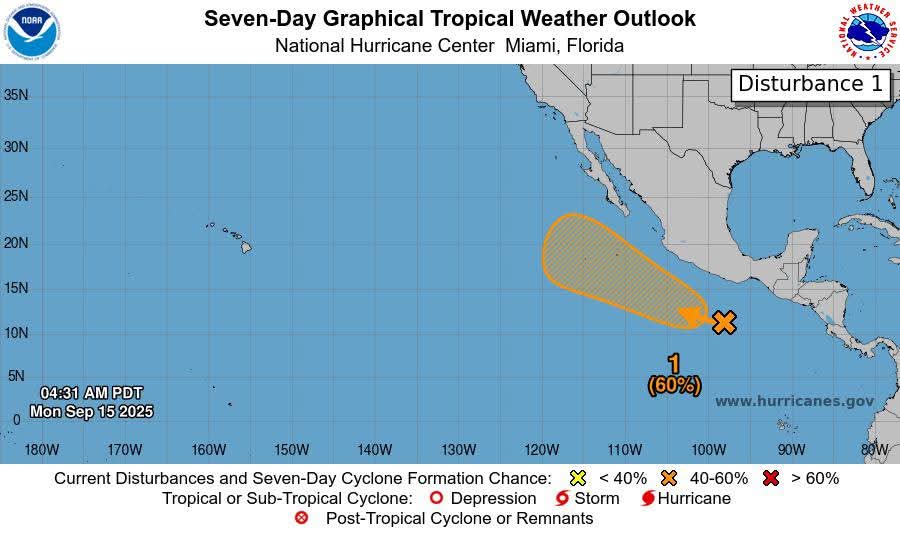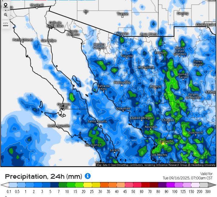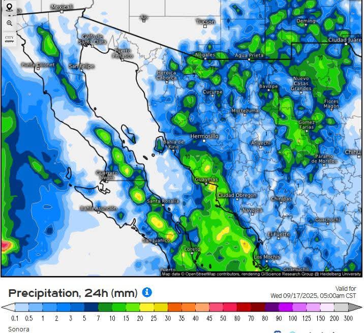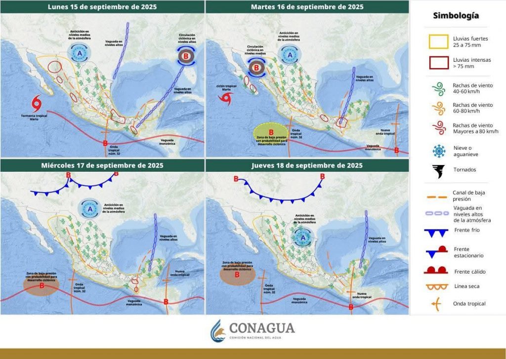 Hermosillo, Sonora a 15 de septiembre de 2025.- Lunes, basándose en la valoración y análisis de la información meteorológica en general y con base en información del Servicio Meteorológico Nacional y diferentes fuentes oficiales de los Estados Unidos, la Coordinación Estatal de Protección Civil emite el siguiente pronóstico: