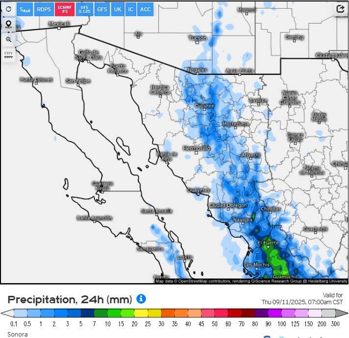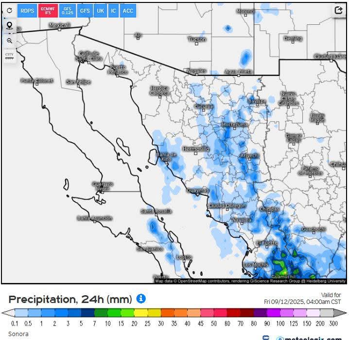 Hermosillo, Sonora a 10 de septiembre de 2025.- Miércoles, basándose en la valoración y análisis de la información meteorológica en general y con base en información del Servicio Meteorológico Nacional y diferentes fuentes oficiales de los Estados Unidos, la Coordinación Estatal de Protección Civil emite el siguiente pronóstico: