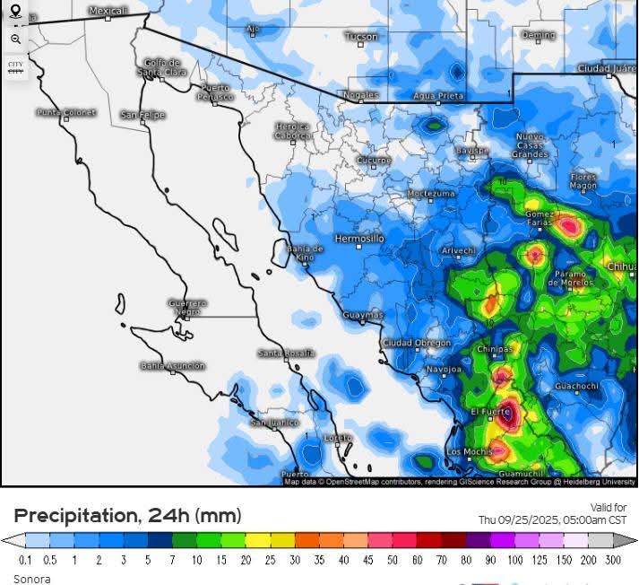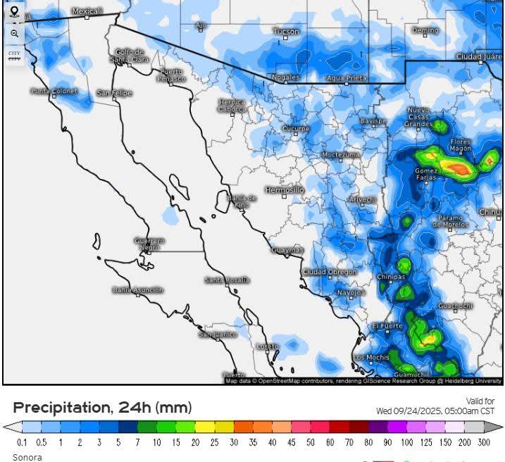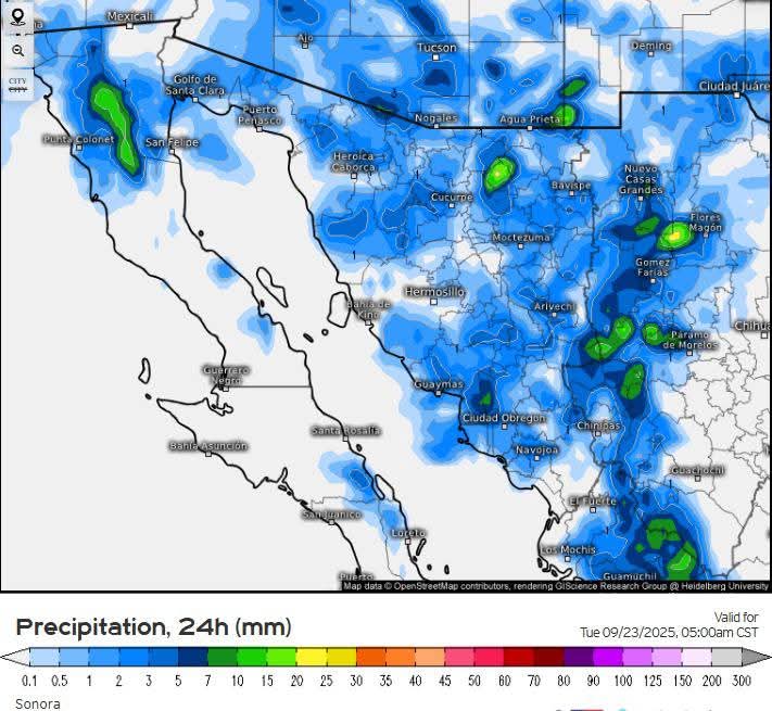 Hermosillo, Sonora a 22 de septiembre de 2025.- Lunes, basándose en la valoración y análisis de la información meteorológica en general y con base en información del Servicio Meteorológico Nacional y diferentes fuentes oficiales de los Estados Unidos, la Coordinación Estatal de Protección Civil emite el siguiente pronóstico: