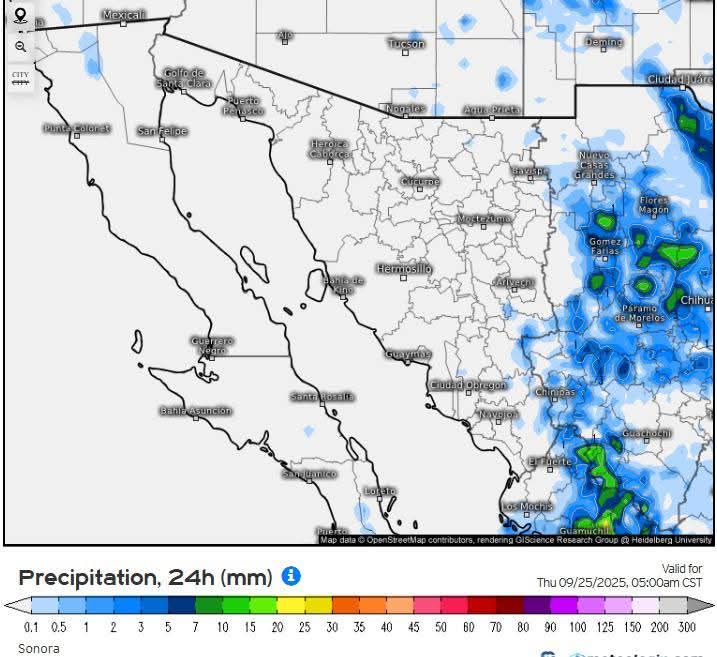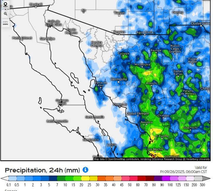 Hermosillo, Sonora a 23 de septiembre de 2025.- Martes, basándose en la valoración y análisis de la información meteorológica en general y con base en información del Servicio Meteorológico Nacional y diferentes fuentes oficiales de los Estados Unidos, la Coordinación Estatal de Protección Civil emite el siguiente pronóstico: