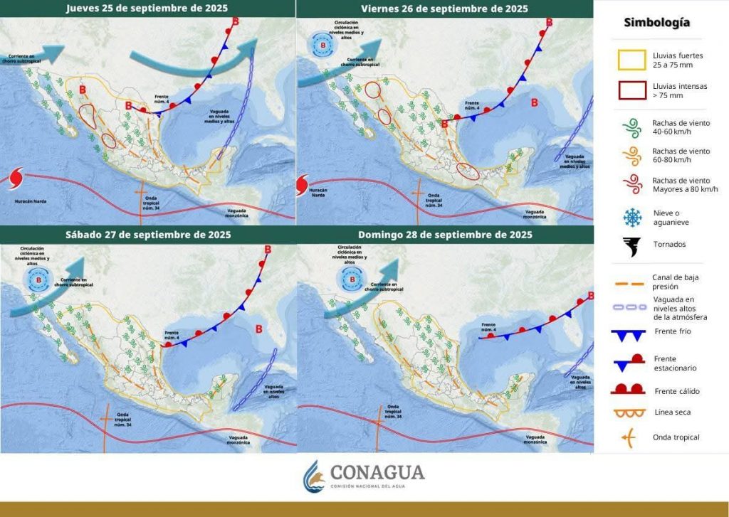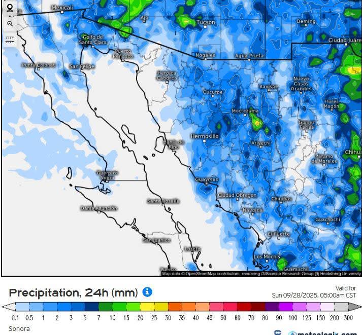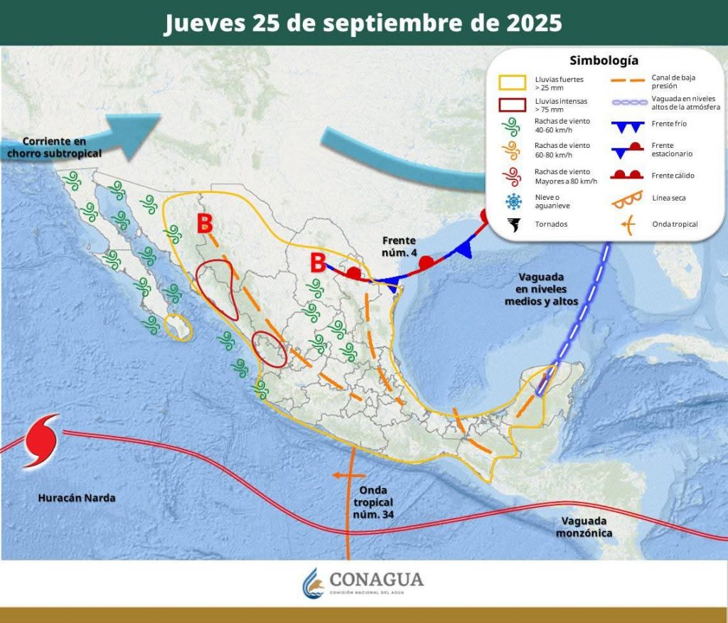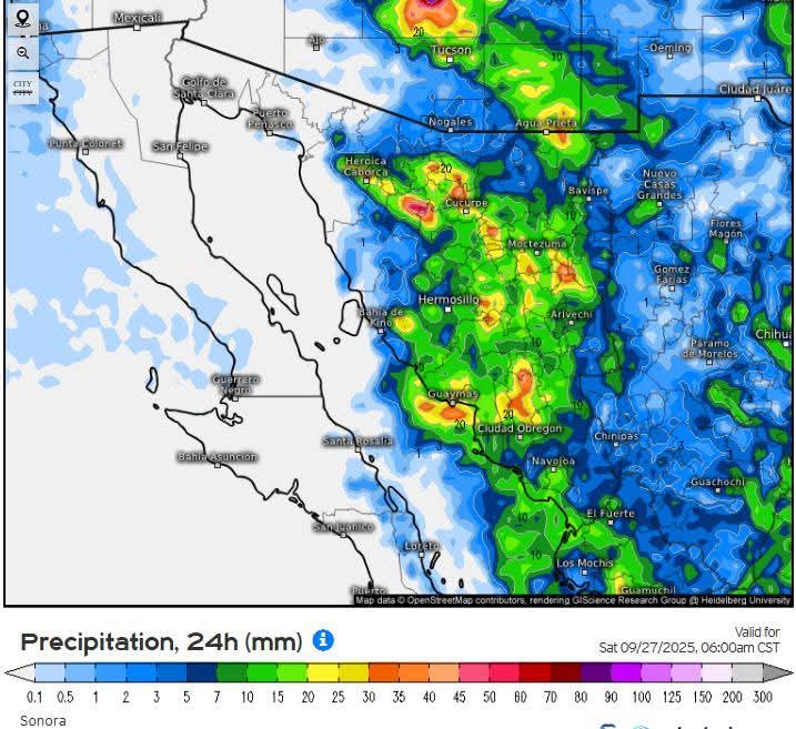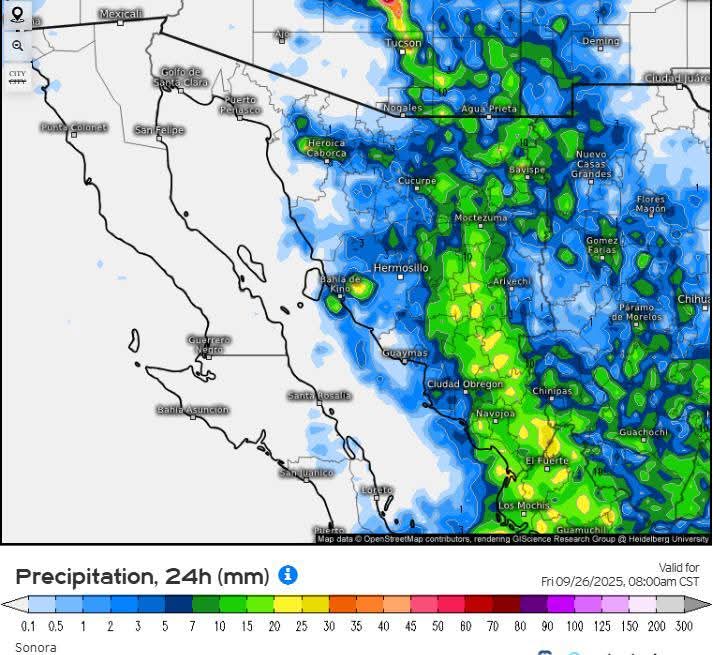 Hermosillo, Sonora a 25 de septiembre de 2025.- jueves basándose en la valoración y análisis de la información meteorológica en general y con base en información del Servicio Meteorológico Nacional y diferentes fuentes oficiales de los Estados Unidos, la Coordinación Estatal de Protección Civil emite el siguiente pronóstico: