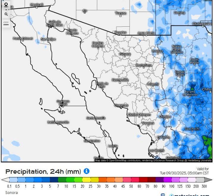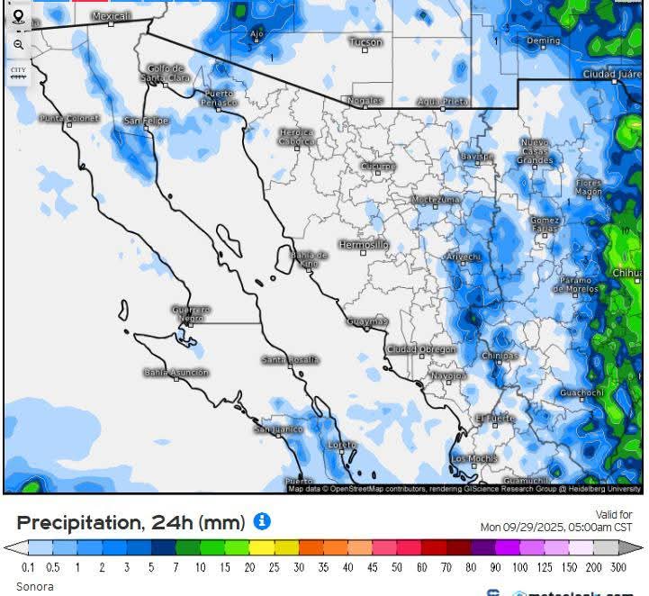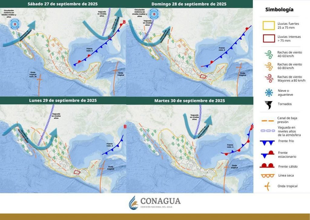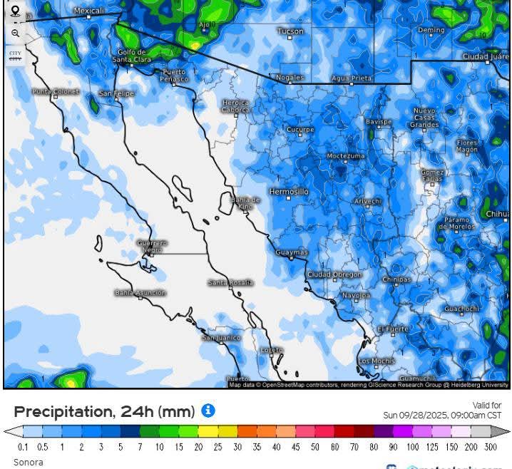 Hermosillo, Sonora a 27 de septiembre de 2025.- Sábado, basándose en la valoración y análisis de la información meteorológica en general y con base en información del Servicio Meteorológico Nacional y diferentes fuentes oficiales de los Estados Unidos, la Coordinación Estatal de Protección Civil emite el siguiente pronóstico: