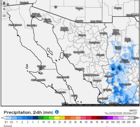 Hermosillo, Sonora a 30 de septiembre de 2025.- Martes, basándose en la valoración y análisis de la información meteorológica en general y con base en información del Servicio Meteorológico Nacional y diferentes fuentes oficiales de los Estados Unidos, la Coordinación Estatal de Protección Civil emite el siguiente pronóstico: