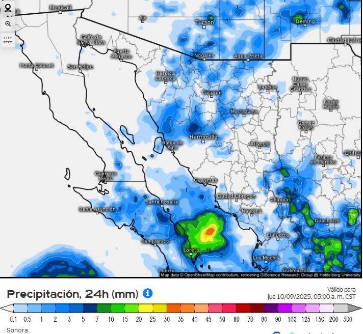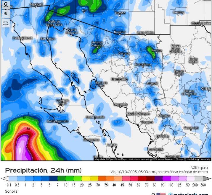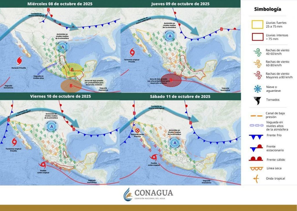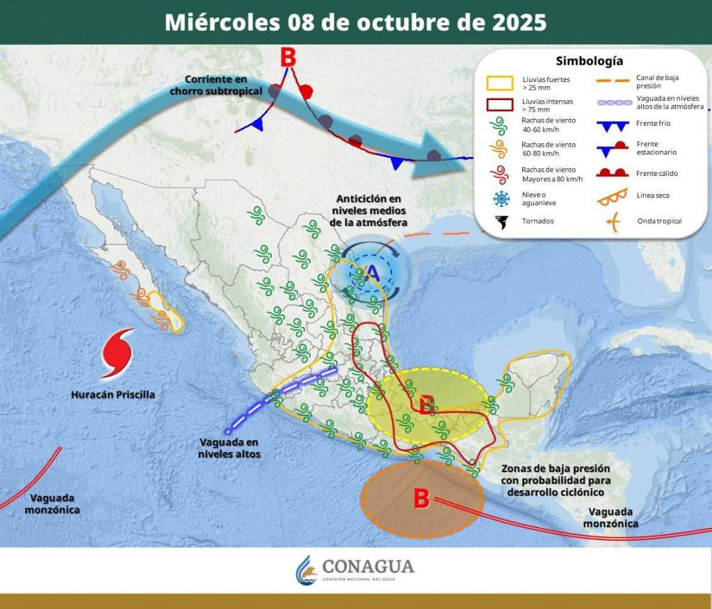 Hermosillo, Sonora a 08 de octubre de 2025.- Miércoles, basándose en la valoración y análisis de la información meteorológica en general y con base en información del Servicio Meteorológico Nacional y diferentes fuentes oficiales de los Estados Unidos, la Coordinación Estatal de Protección Civil emite el siguiente pronóstico: