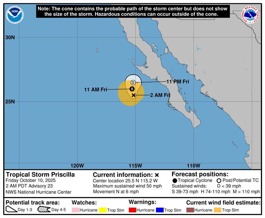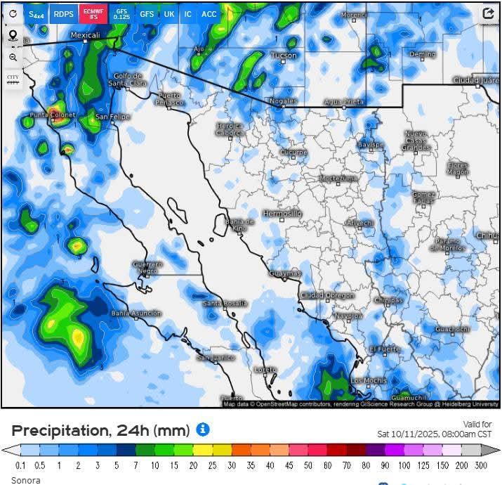 Hermosillo, Sonora a 10 de octubre de 2025.- viernes basándose en la valoración y análisis de la información meteorológica en general y con base en información del Servicio Meteorológico Nacional y diferentes fuentes oficiales de los Estados Unidos, la Coordinación Estatal de Protección Civil emite el siguiente pronóstico: