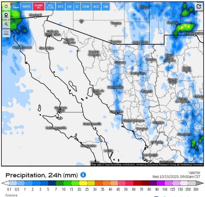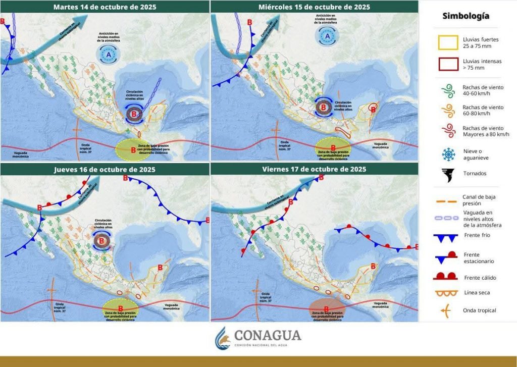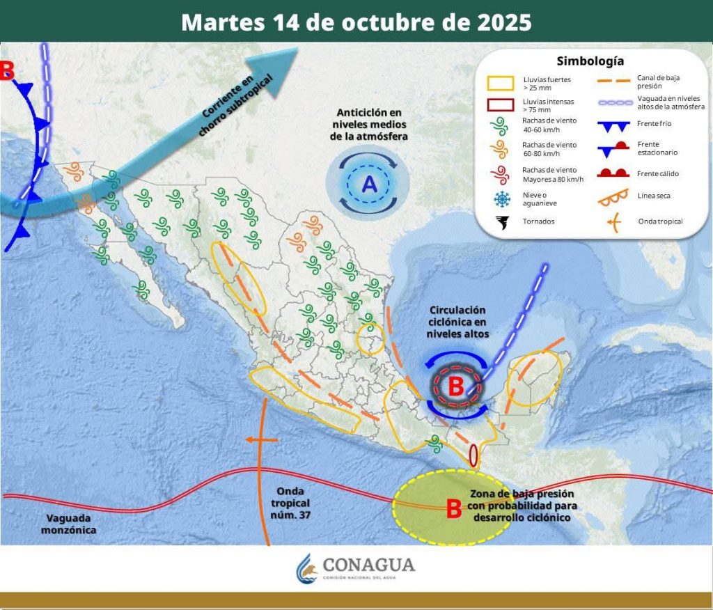Hermosillo, Sonora a 14 de octubre de 2025.- martes basándose en la valoración y análisis de la información meteorológica en general y con base en información del Servicio Meteorológico Nacional y diferentes fuentes oficiales de los Estados Unidos, la Coordinación Estatal de Protección Civil emite el siguiente pronóstico: