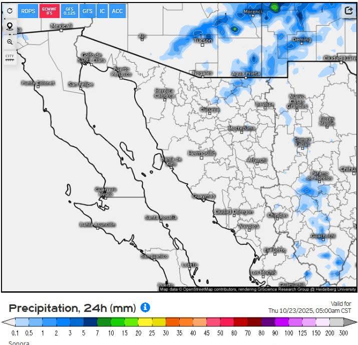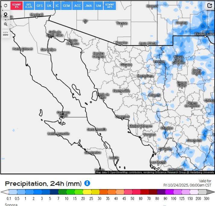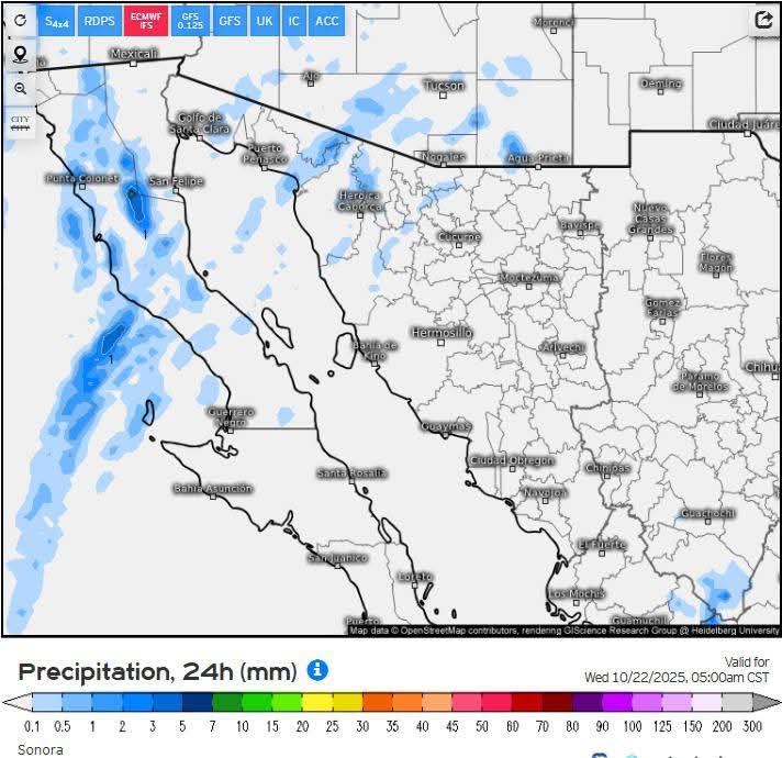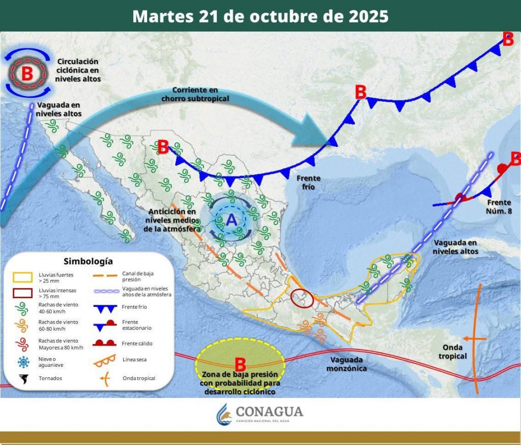 Hermosillo, Sonora a 21 de octubre de 2025.- Martes, basándose en la valoración y análisis de la información meteorológica en general y con base en información del Servicio Meteorológico Nacional y diferentes fuentes oficiales de los Estados Unidos, la Coordinación Estatal de Protección Civil emite el siguiente pronóstico: