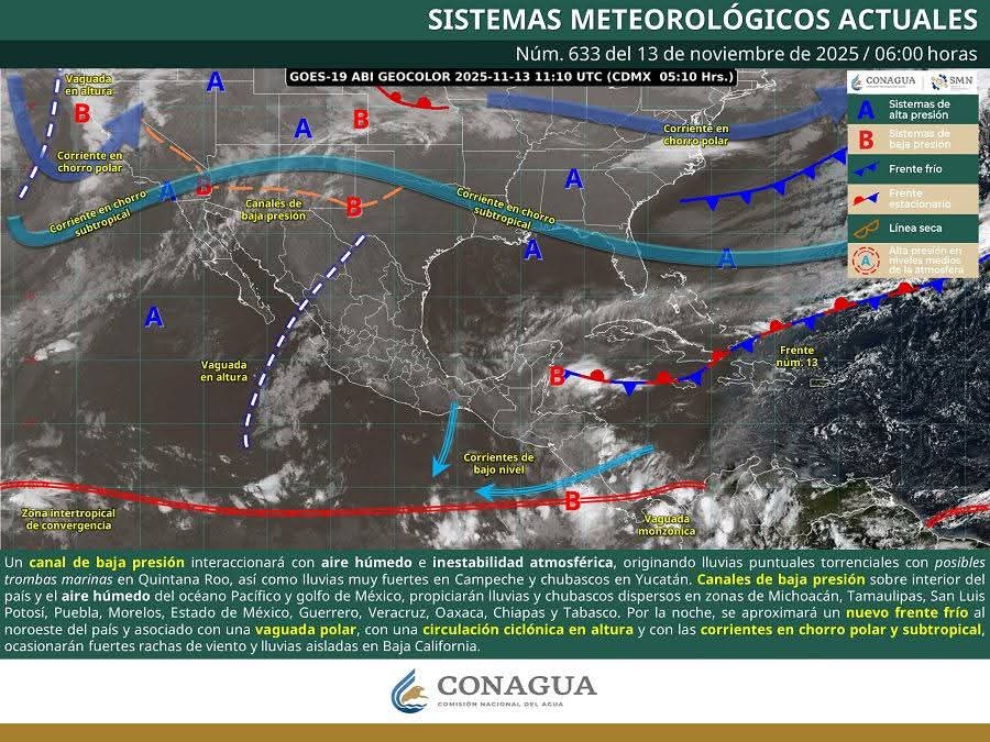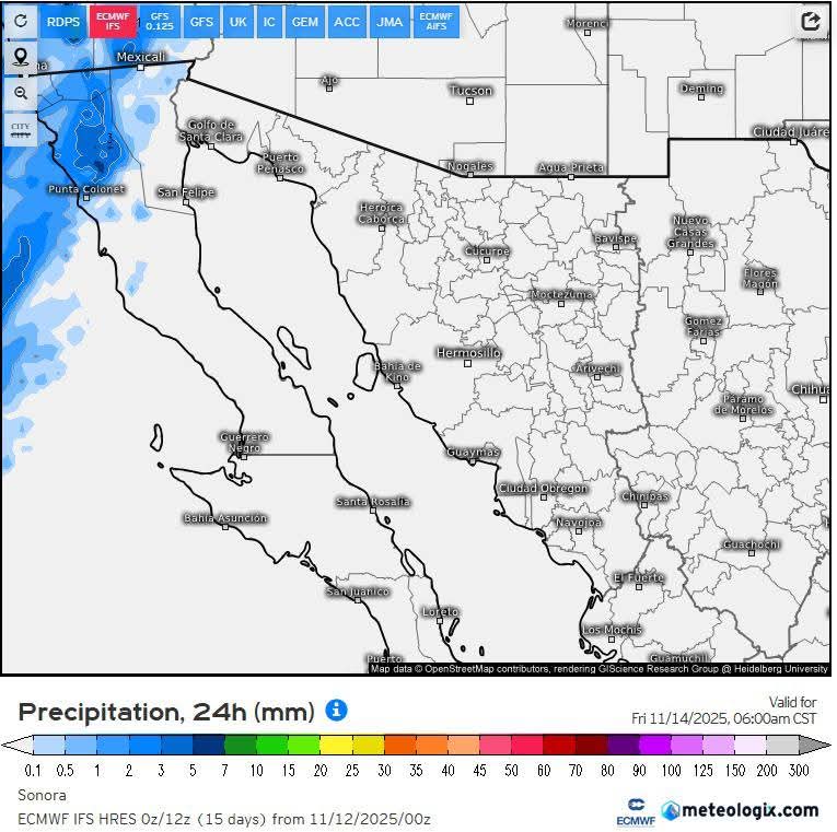 Hermosillo, Sonora a 13 de noviembre de 2025.- Jueves, basándose en la valoración y análisis de la información meteorológica en general y con base en información del Servicio Meteorológico Nacional y diferentes fuentes oficiales de los Estados Unidos, la Coordinación Estatal de Protección Civil emite el siguiente pronóstico: