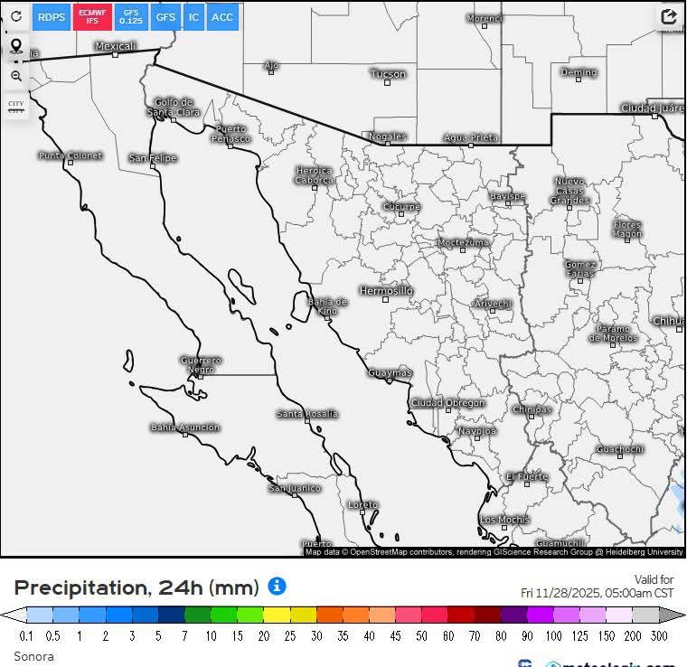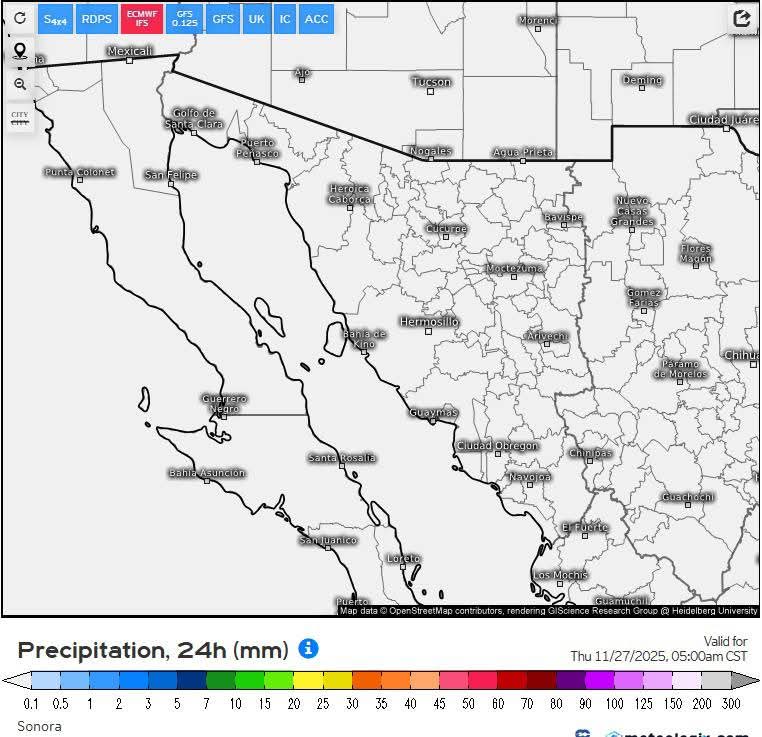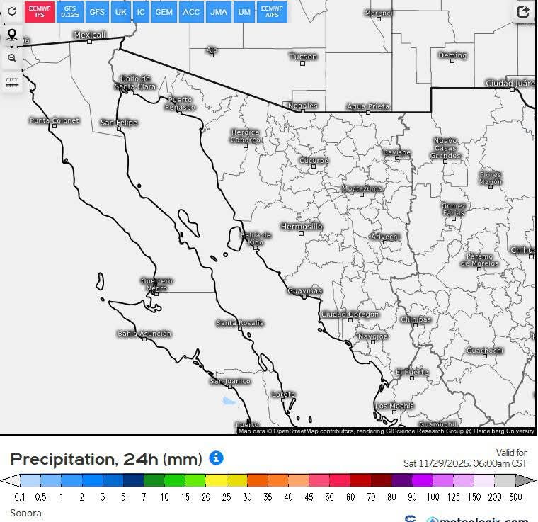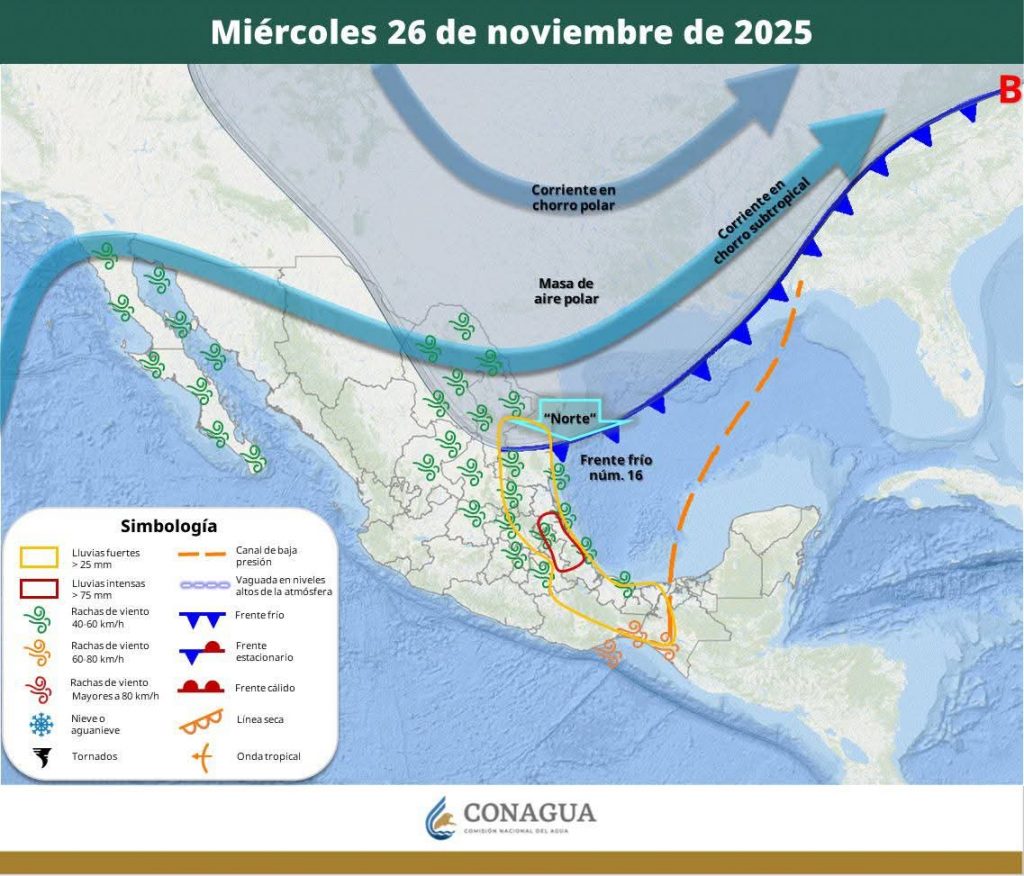 Hermosillo, Sonora a 26 de noviembre de 2025.- miércoles basándose en la valoración y análisis de la información meteorológica en general y con base en información del Servicio Meteorológico Nacional y diferentes fuentes oficiales de los Estados Unidos, la Coordinación Estatal de Protección Civil emite el siguiente pronóstico: