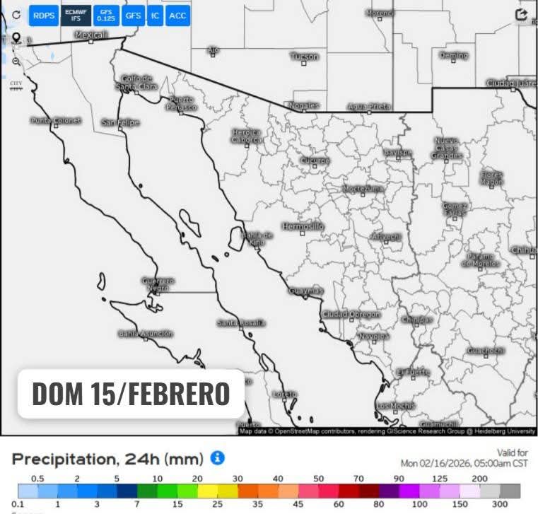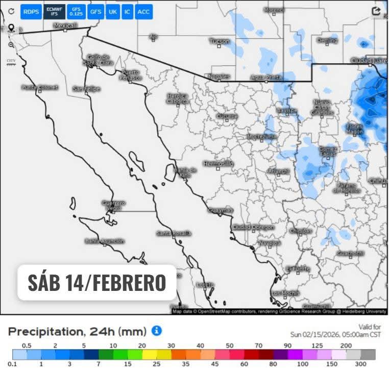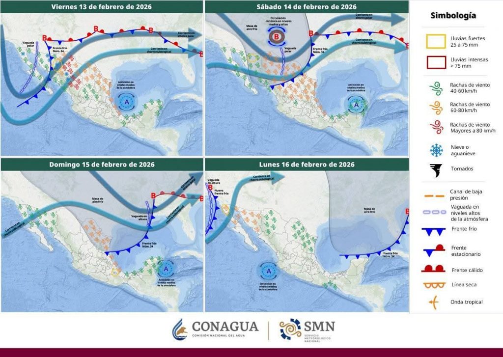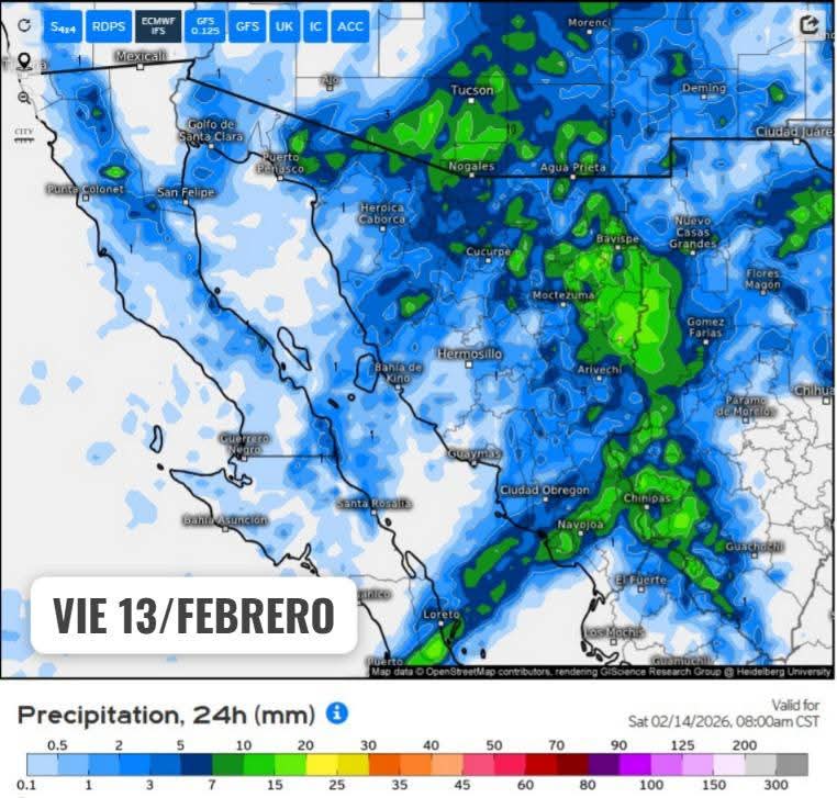 Hermosillo, Sonora a 13 de febrero de 2026.- viernes basándose en la valoración y análisis de la información meteorológica en general y con base en información del Servicio Meteorológico Nacional y diferentes fuentes oficiales de los Estados Unidos, la Coordinación Estatal de Protección Civil emite el siguiente pronóstico: