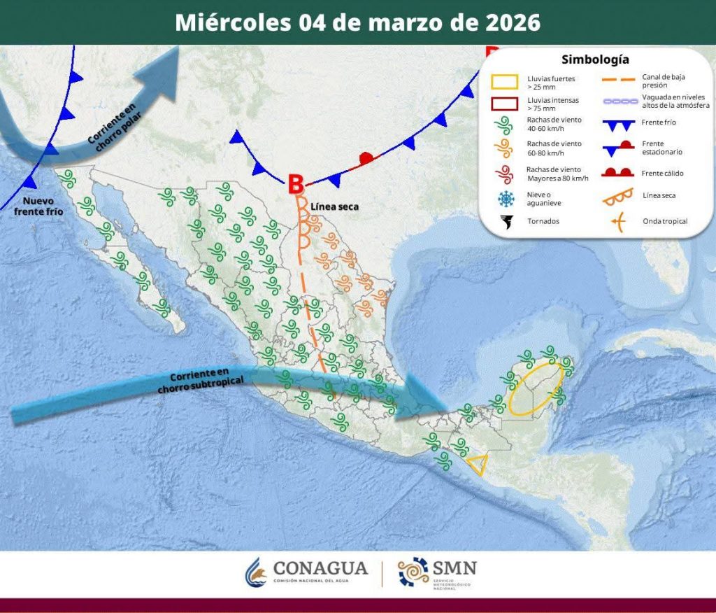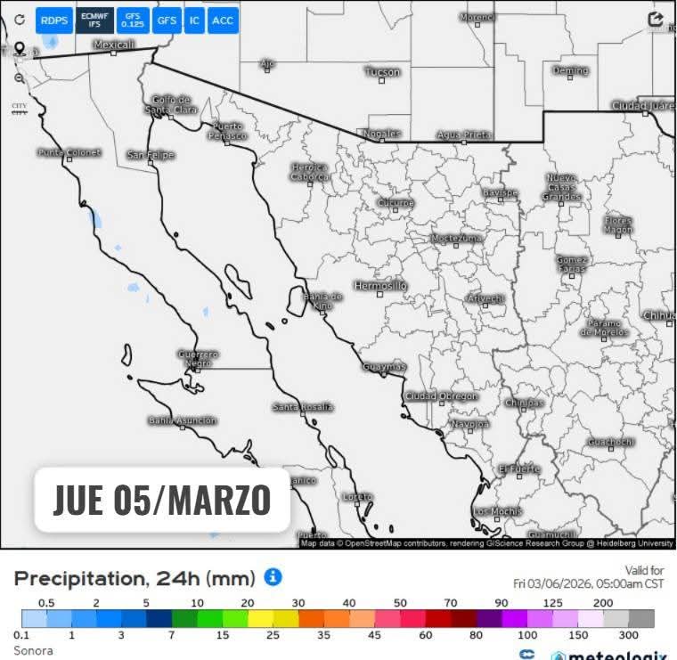 Hermosillo, Sonora a 04 de marzo de 2026.- Miércoles, basándose en la valoración y análisis de la información meteorológica en general y con base en información del Servicio Meteorológico Nacional y diferentes fuentes oficiales de los Estados Unidos, la Coordinación Estatal de Protección Civil emite el siguiente pronóstico: