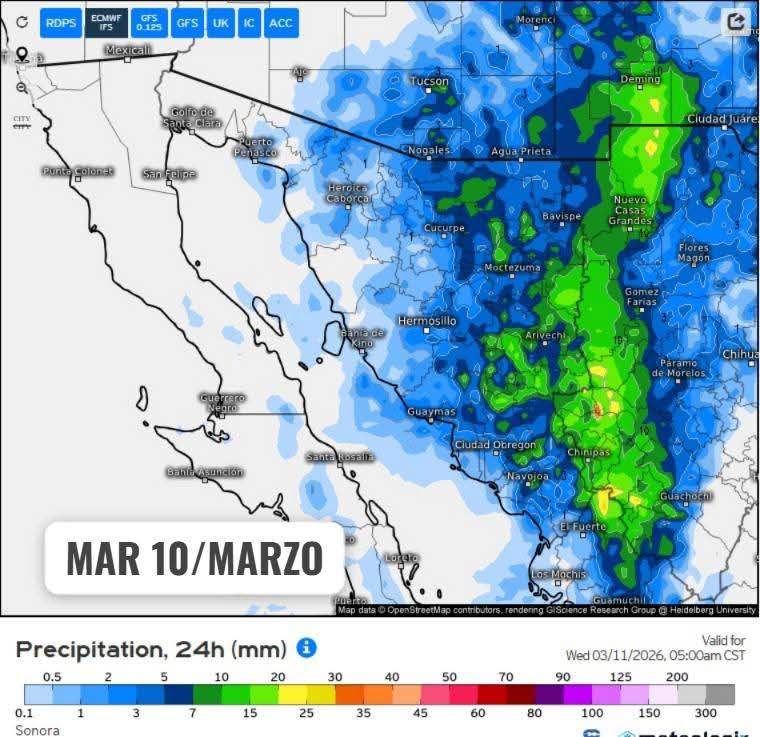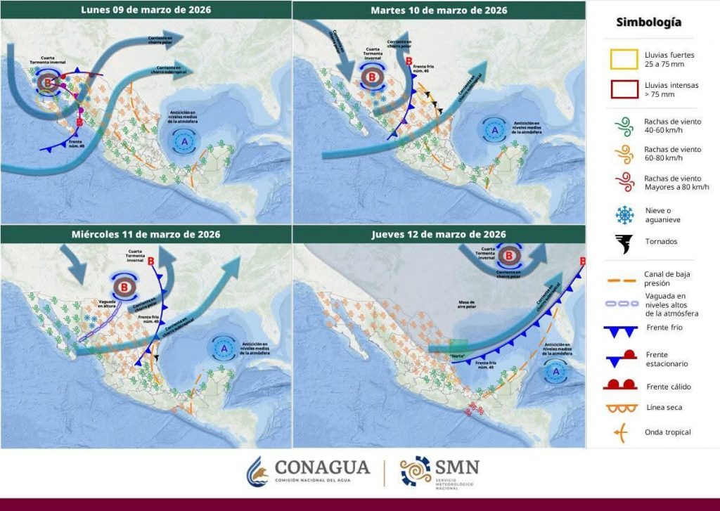 Hermosillo, Sonora a 09 de marzo de 2026.- Lunes, basándose en la valoración y análisis de la información meteorológica en general y con base en información del Servicio Meteorológico Nacional y diferentes fuentes oficiales de los Estados Unidos, la Coordinación Estatal de Protección Civil emite el siguiente pronóstico: