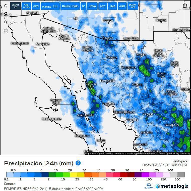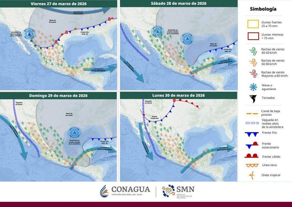 Hermosillo, Sonora a 27 de marzo de 2026.- viernes basándose en la valoración y análisis de la información meteorológica en general y con base en información del Servicio Meteorológico Nacional y diferentes fuentes oficiales de los Estados Unidos, la Coordinación Estatal de Protección Civil emite el siguiente pronóstico: