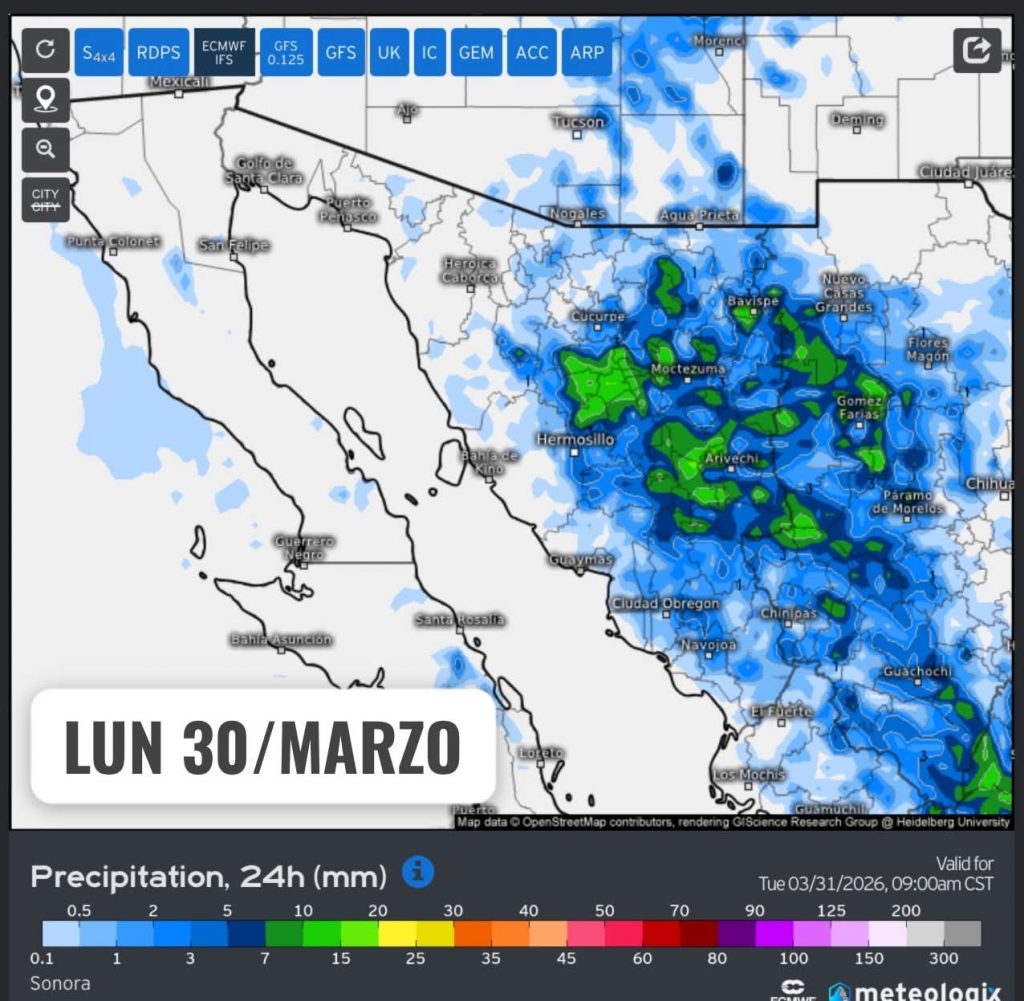 Hermosillo, Sonora a 30 de marzo de 2026.- Lunes, basándose en la valoración y análisis de la información meteorológica en general y con base en información del Servicio Meteorológico Nacional y diferentes fuentes oficiales de los Estados Unidos, la Coordinación Estatal de Protección Civil emite el siguiente pronóstico: