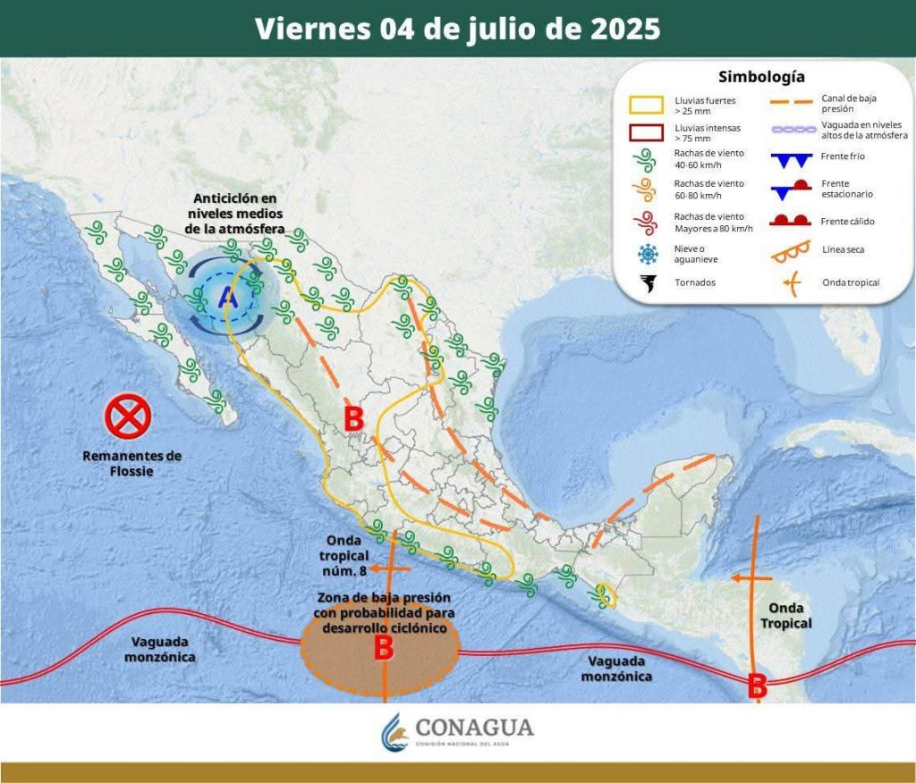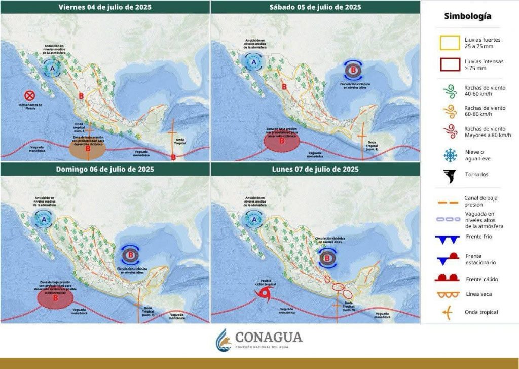 Hermosillo, Sonora a 04 de julio de 2025.- viernes basándose en la valoración y análisis de la información meteorológica en general y con base en información del Servicio Meteorológico Nacional y diferentes fuentes oficiales de los Estados Unidos, la Coordinación Estatal de Protección Civil emite el siguiente pronóstico:
