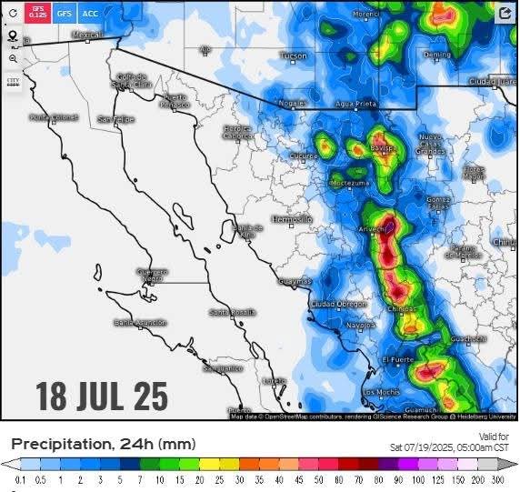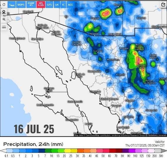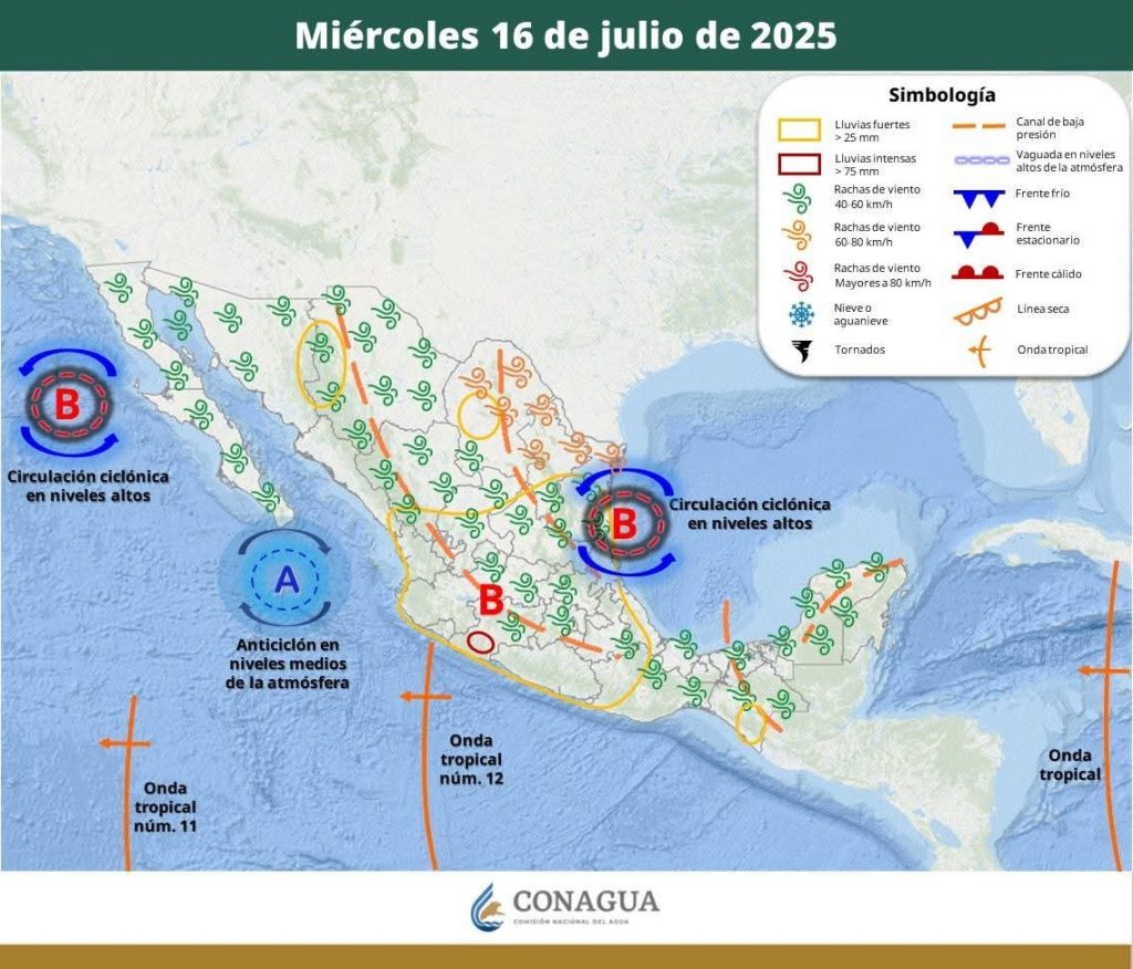Hermosillo, Sonora a 16 de julio de 2025.- Miércoles, basándose en la valoración y análisis de la información meteorológica en general y con base en información del Servicio Meteorológico Nacional y diferentes fuentes oficiales de los Estados Unidos, la Coordinación Estatal de Protección Civil emite el siguiente pronóstico: