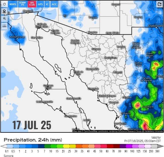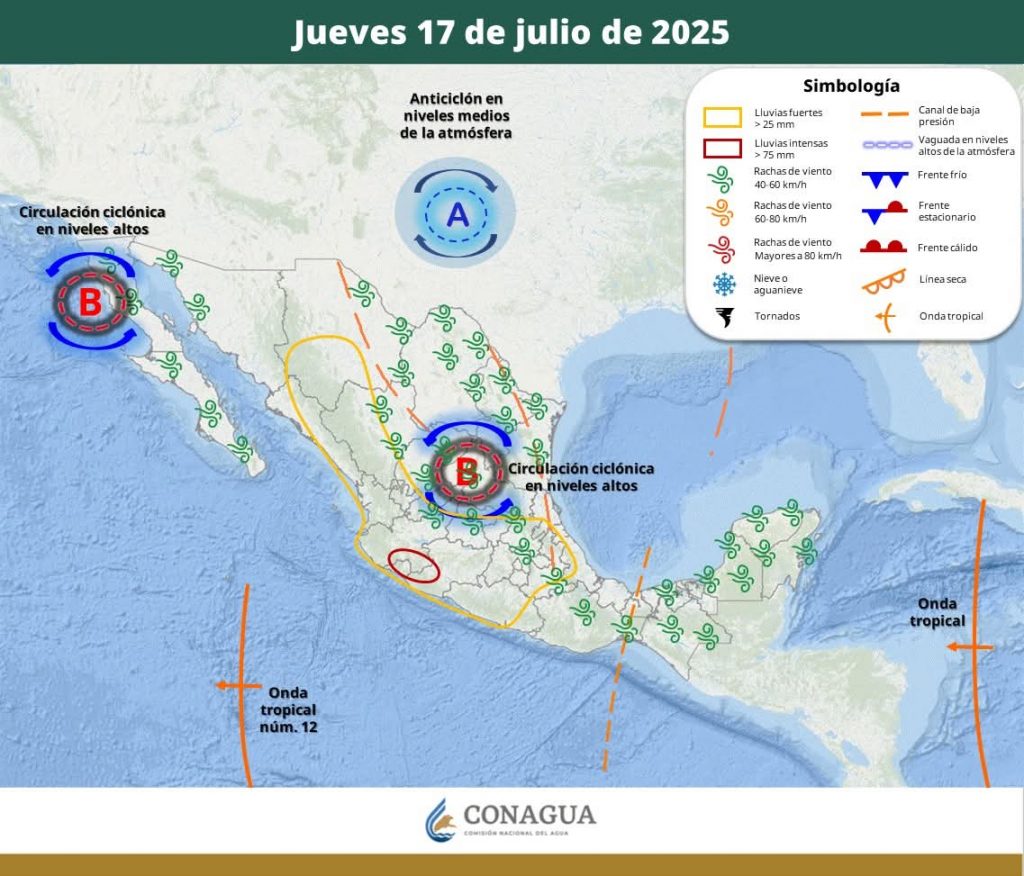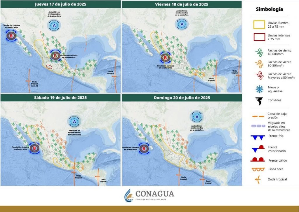 Hermosillo, Sonora a 17 de julio de 2025.- jueves basándose en la valoración y análisis de la información meteorológica en general y con base en información del Servicio Meteorológico Nacional y diferentes fuentes oficiales de los Estados Unidos, la Coordinación Estatal de Protección Civil emite el siguiente pronóstico: