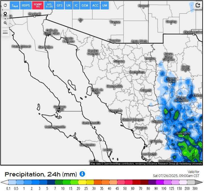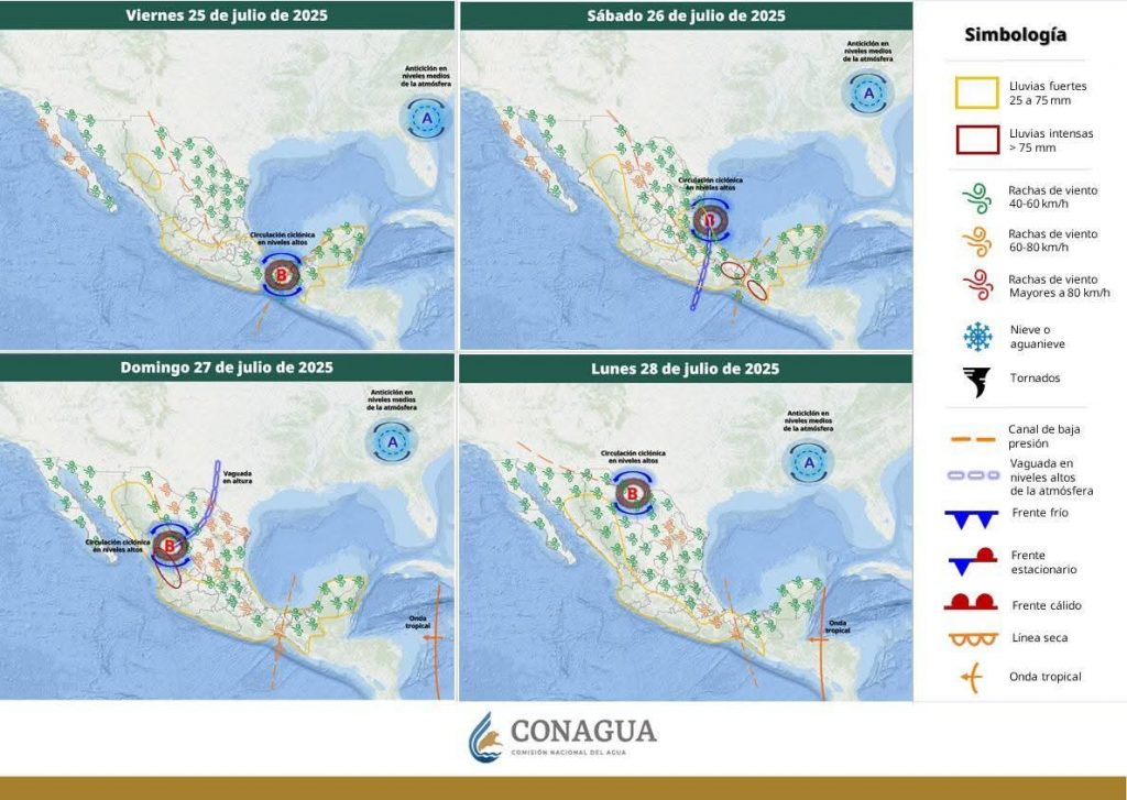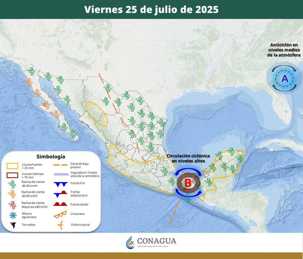 Hermosillo, Sonora a 25 de julio de 2025.- Viernes, basándose en la valoración y análisis de la información meteorológica en general y con base en información del Servicio Meteorológico Nacional y diferentes fuentes oficiales de los Estados Unidos, la Coordinación Estatal de Protección Civil emite el siguiente pronóstico:
