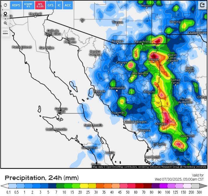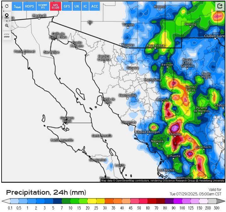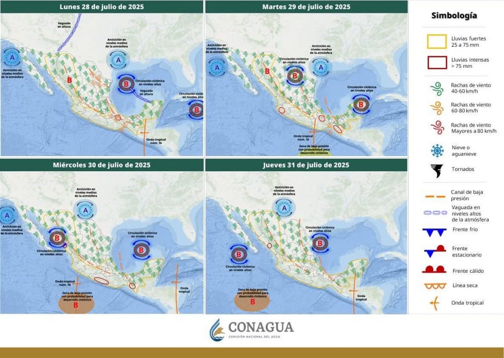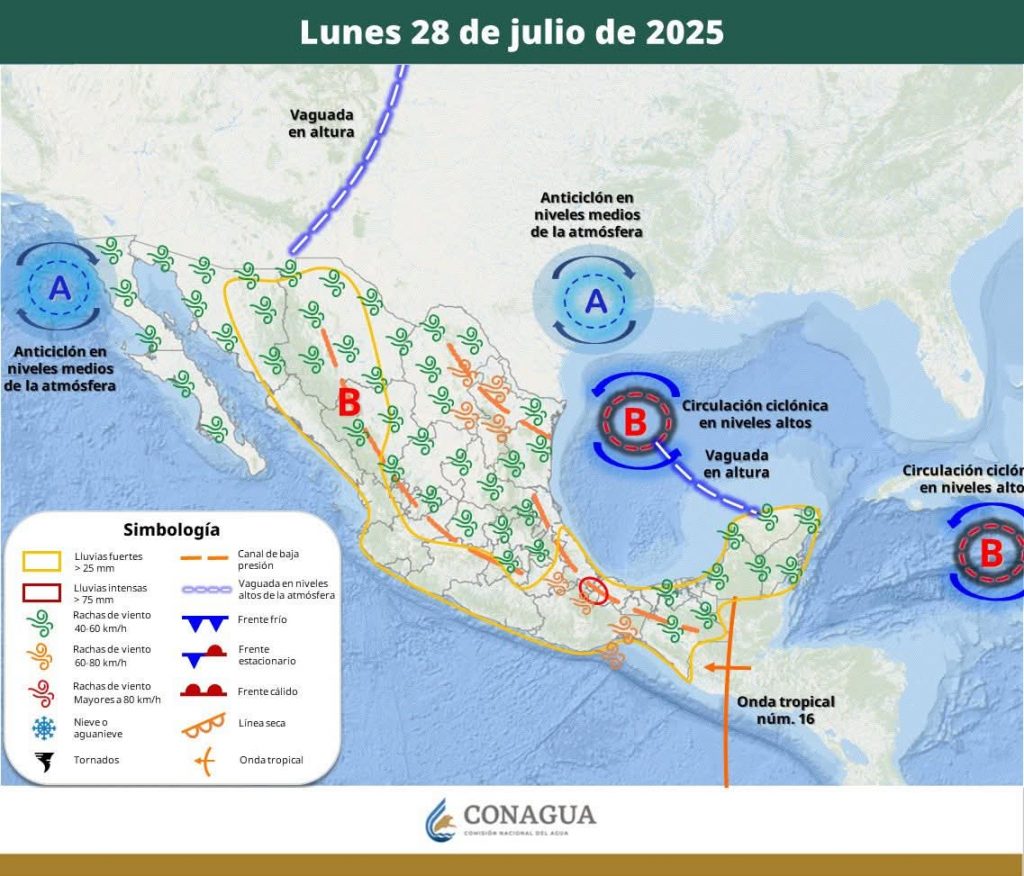 Hermosillo, Sonora a 28 de julio de 2025.- lunes basándose en la valoración y análisis de la información meteorológica en general y con base en información del Servicio Meteorológico Nacional y diferentes fuentes oficiales de los Estados Unidos, la Coordinación Estatal de Protección Civil emite el siguiente pronóstico: