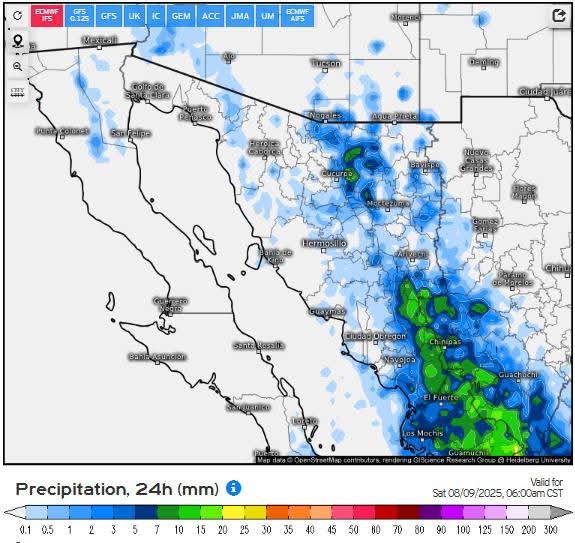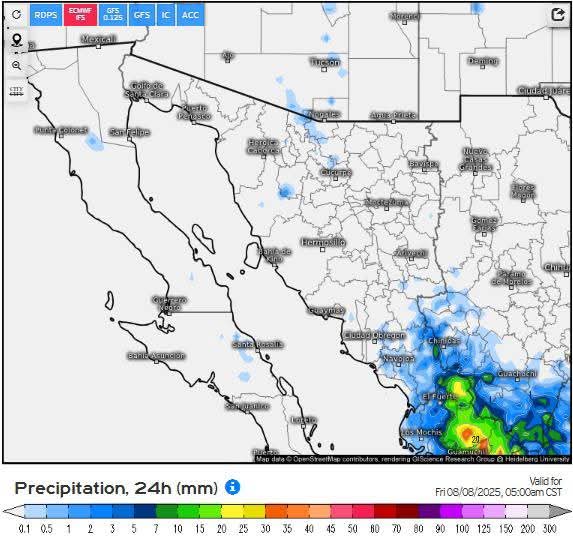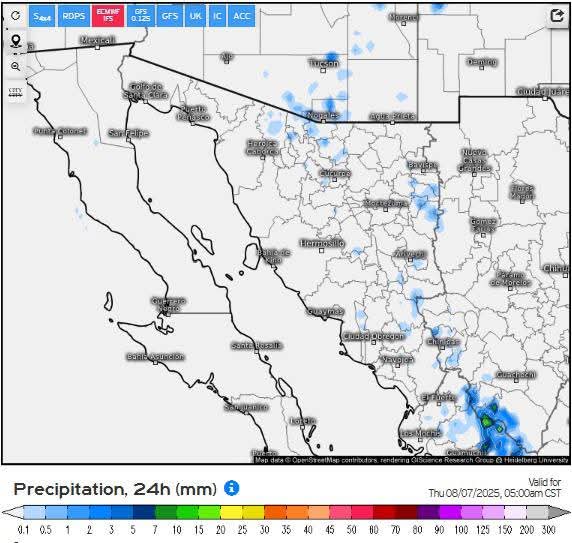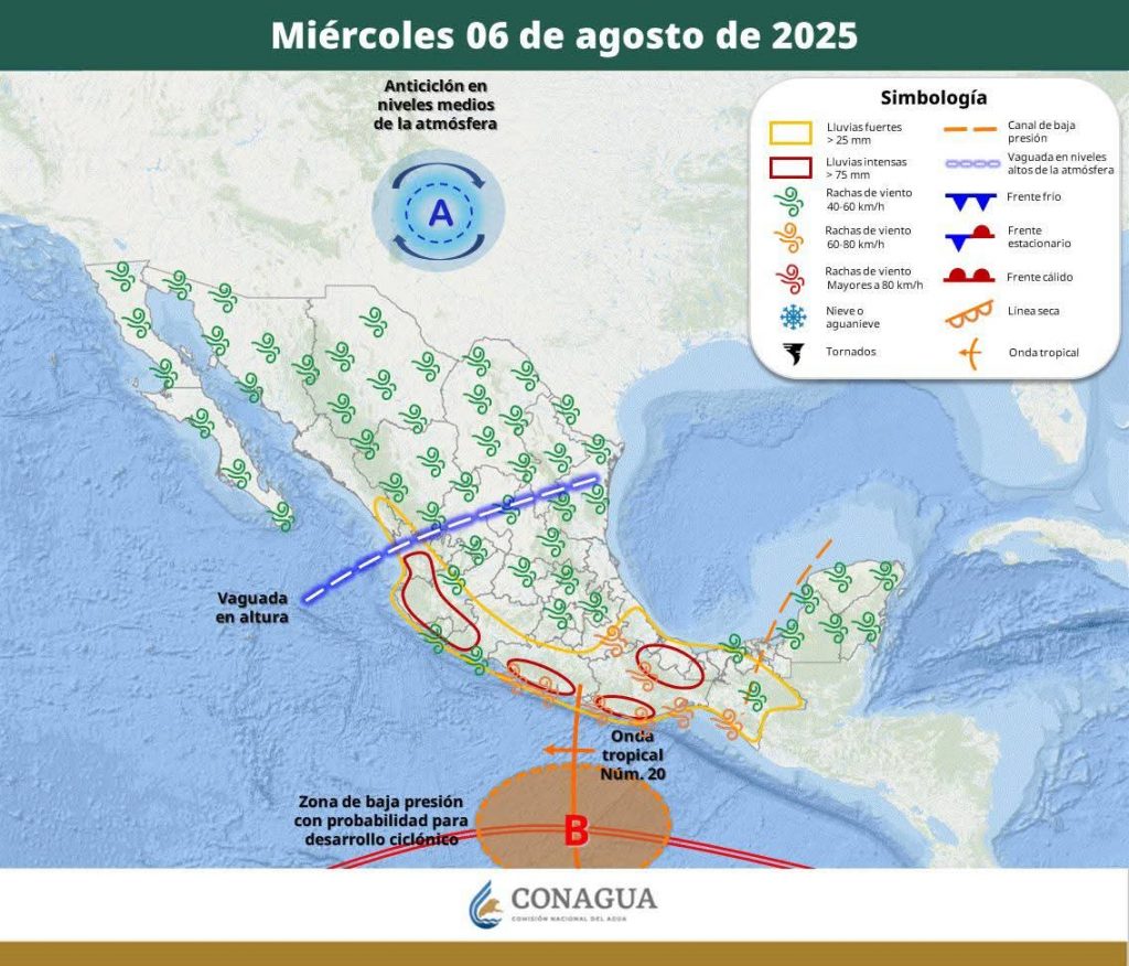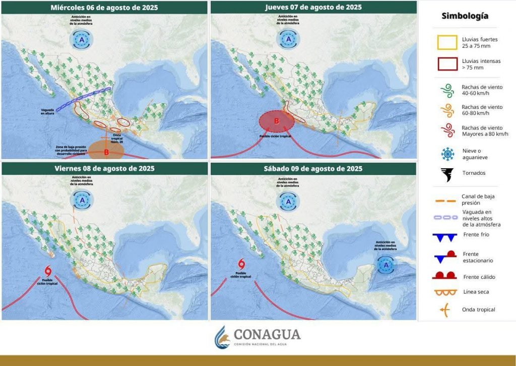 Hermosillo, Sonora a 06 de agosto de 2025.- Miércoles, basándose en la valoración y análisis de la información meteorológica en general y con base en información del Servicio Meteorológico Nacional y diferentes fuentes oficiales de los Estados Unidos, la Coordinación Estatal de Protección Civil emite el siguiente pronóstico: