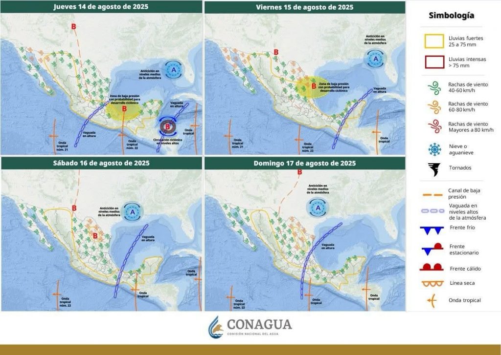 Hermosillo, Sonora a 14 de agosto de 2025.- Hoy jueves basándose en la valoración y análisis de la información meteorológica en general y con base en información del Servicio Meteorológico Nacional y diferentes fuentes oficiales de los Estados Unidos, la Coordinación Estatal de Protección Civil emite el siguiente pronóstico: