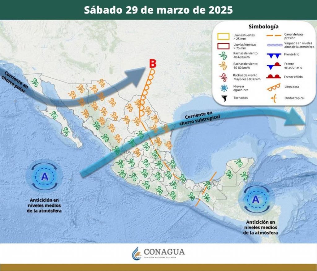 Hermosillo, Sonora a 29 de marzo de 2025.- Sábado, basándose en la valoración y análisis de la información meteorológica en general y con base en información del Servicio Meteorológico Nacional y diferentes fuentes oficiales de los Estados Unidos, la Coordinación Estatal de Protección Civil emite el siguiente pronóstico: