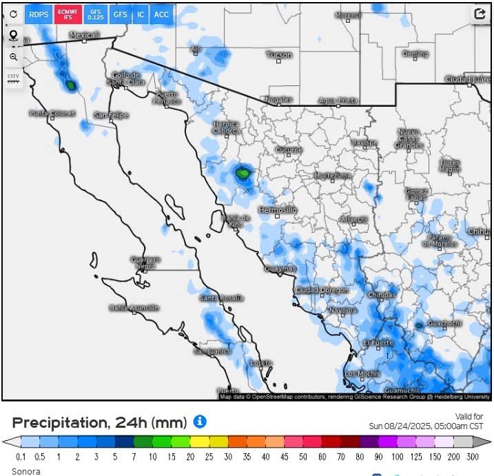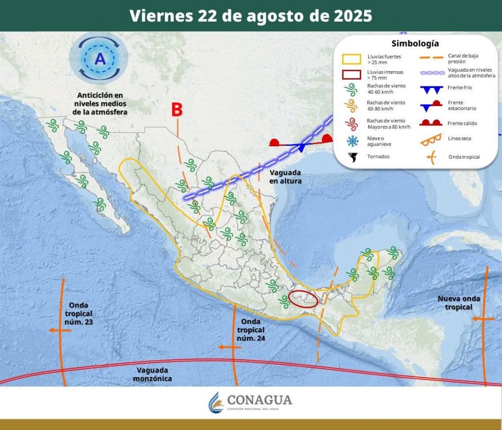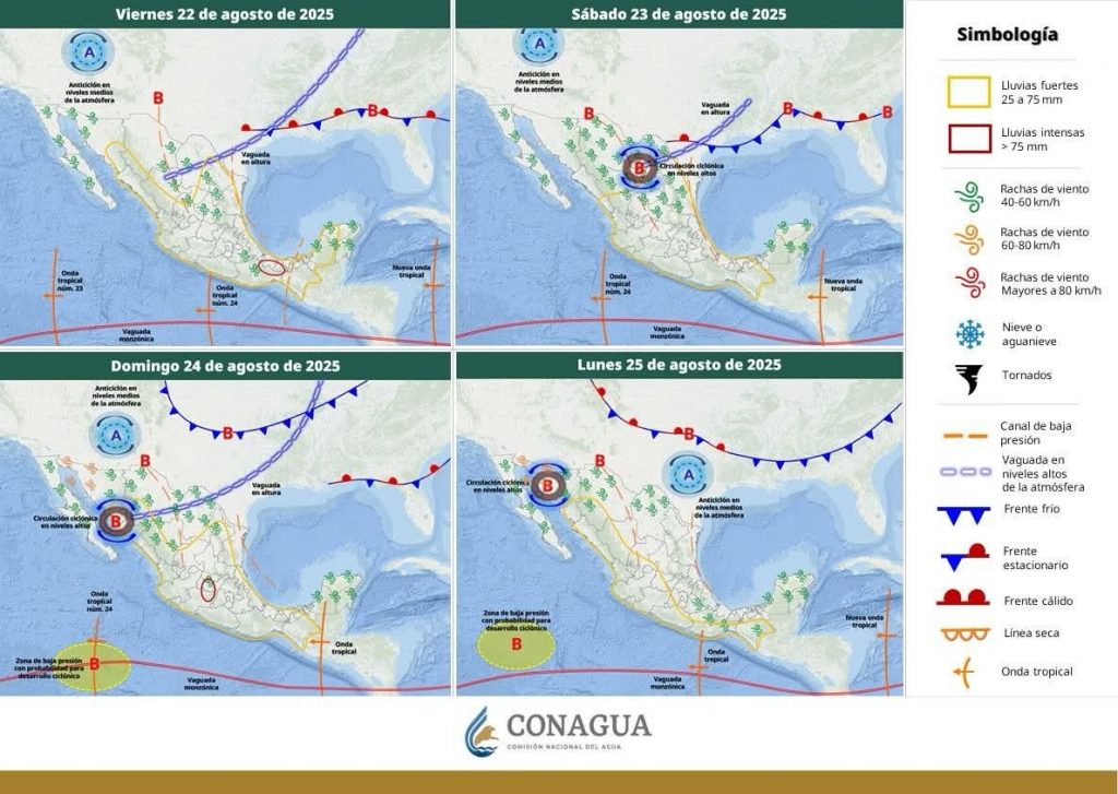 Hermosillo, Sonora a 22 de agosto de 2025.- Viernes, basándose en la valoración y análisis de la información meteorológica en general y con base en información del Servicio Meteorológico Nacional y diferentes fuentes oficiales de los Estados Unidos, la Coordinación Estatal de Protección Civil emite el siguiente pronóstico: