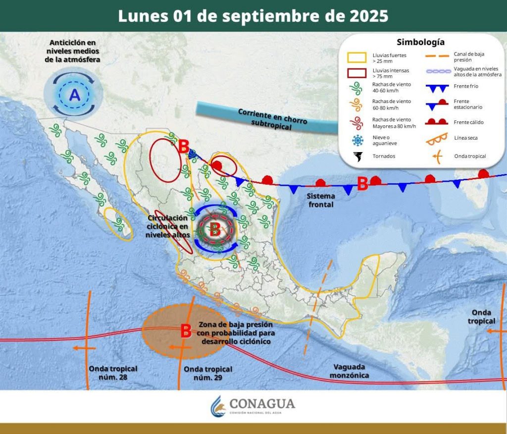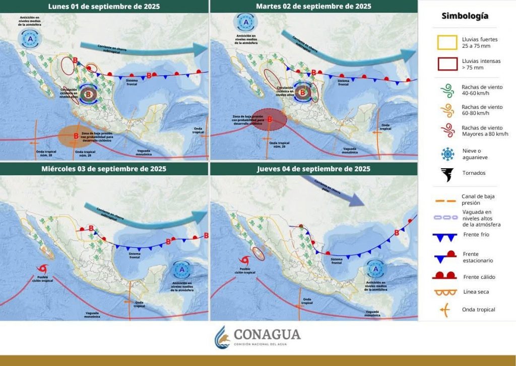 Hermosillo, Sonora a 01 de septiembre de 2025.- lunes basándose en la valoración y análisis de la información meteorológica en general y con base en información del Servicio Meteorológico Nacional y diferentes fuentes oficiales de los Estados Unidos, la Coordinación Estatal de Protección Civil emite el siguiente pronóstico: