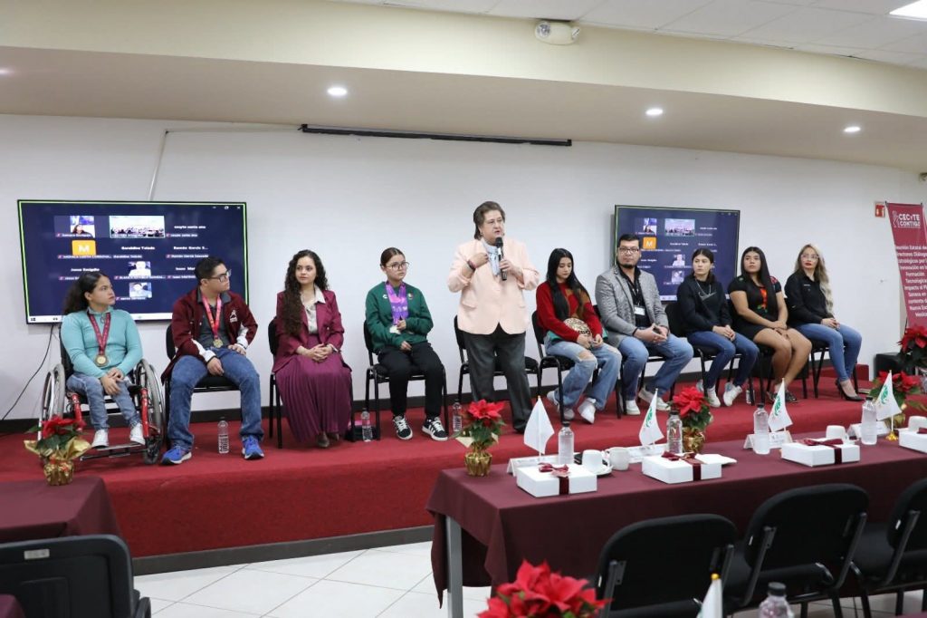 La directora general de Cecyte Sonora, Blanca Aurelia Valenzuela, destacó el talento de las y los jóvenes del Colegio y el apoyo de familias, docentes y personal directivo. También resaltó el impacto del programa #CecyteContiGo, que gracias al compromiso de la comunidad educativa ha fortalecido la permanencia escolar en la Educación Media Superior.
