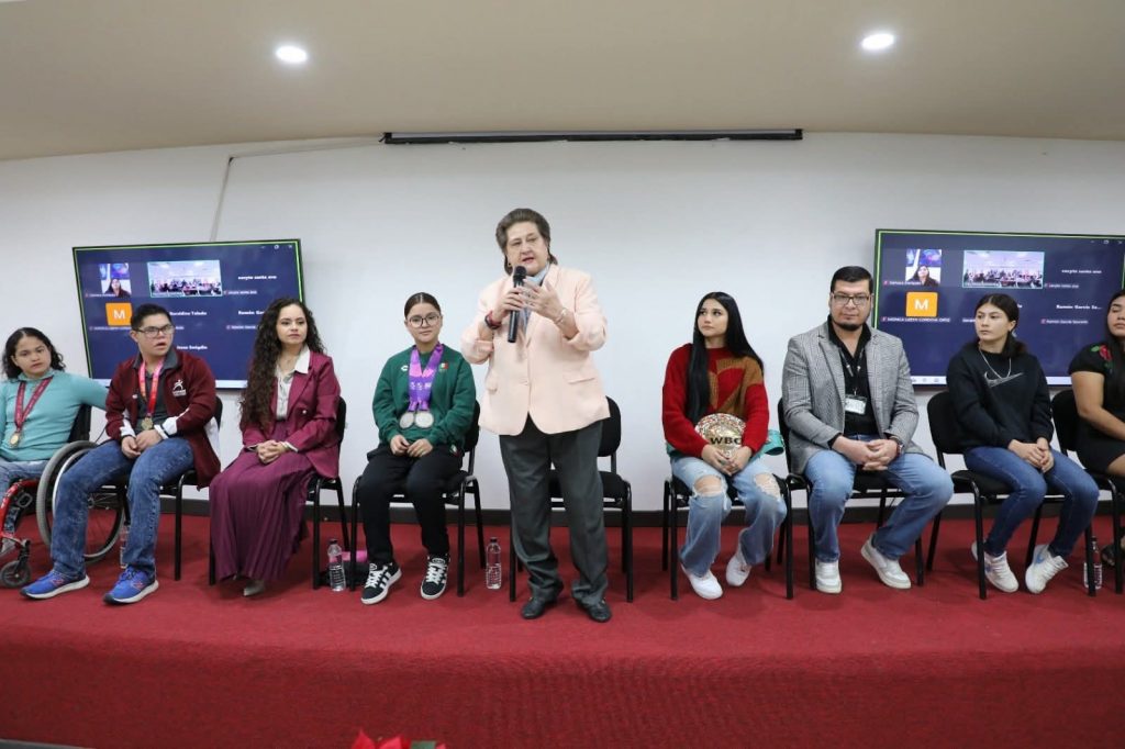 Asimismo, se reconoció la trayectoria de los egresados Camila Zamorano, campeona mundial Peso Átomo WBC; Odaliz Corzo Álamo, campeona mundial de Boxeo Amateur WBC 2025; y Sebastián Amavizca Toyos, campeón internacional en paranatación.