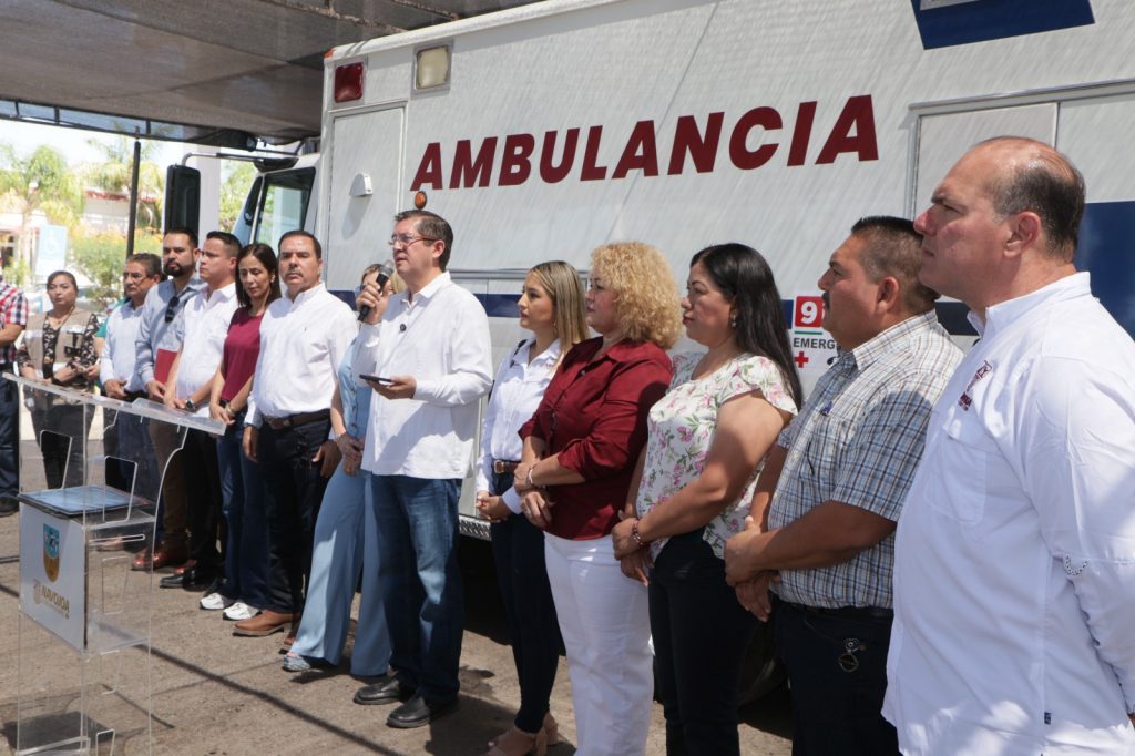 Navojoa, Sonora, 1 de agosto 2025.- Como refuerzo para la atención oportuna y eficiente en materia de Salud a los navojoeses, el alcalde Jorge Alberto Elías Retes entregó hoy, a la Dirección de Salud Municipal, una ambulancia equipada con instrumental para terapia intensiva, trauma y emergencias cardiacas.