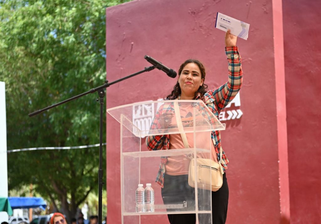 “Nuestro gobernador Alfonso Durazo desde campaña nos dijo: ya le toca a los que nunca les había tocado, y hoy aquí estamos cumpliendo, aquí está nuestro gobernador Alfonso Durazo cumpliéndoles a cada uno de ustedes. Por fin, después de tantos años de olvido, de espera, de promesas, hoy les está llegando la justicia social gracias a nuestro gobernador Alfonso Durazo”, indicó.