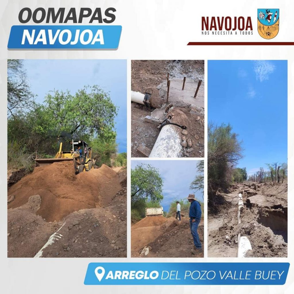 Navojoa, Son.- El Organismo Operador Municipal de Agua Potable, Alcantarillado y Saneamiento de Navojoa (OOMAPASN), en coordinación con la Secretaría de Infraestructura Urbana y Ecología (SIUE), concluyó los trabajos en la línea principal de 15″ que capta el agua de los pozos Valle Buey.